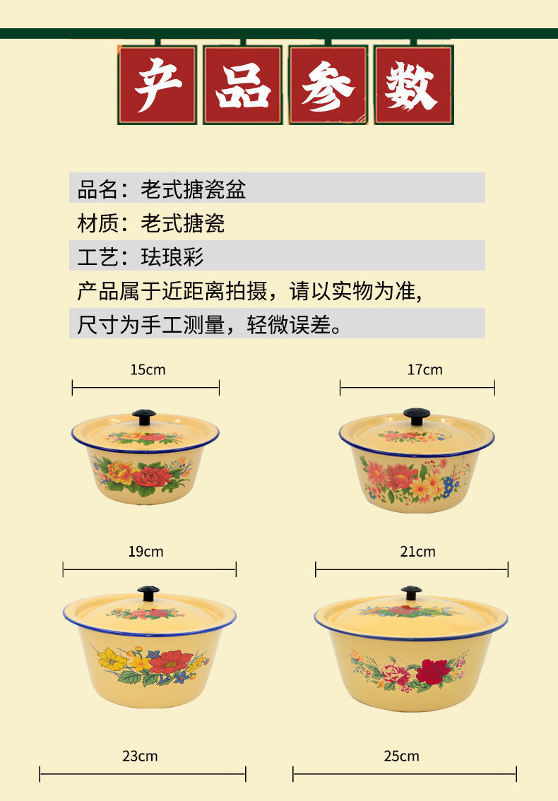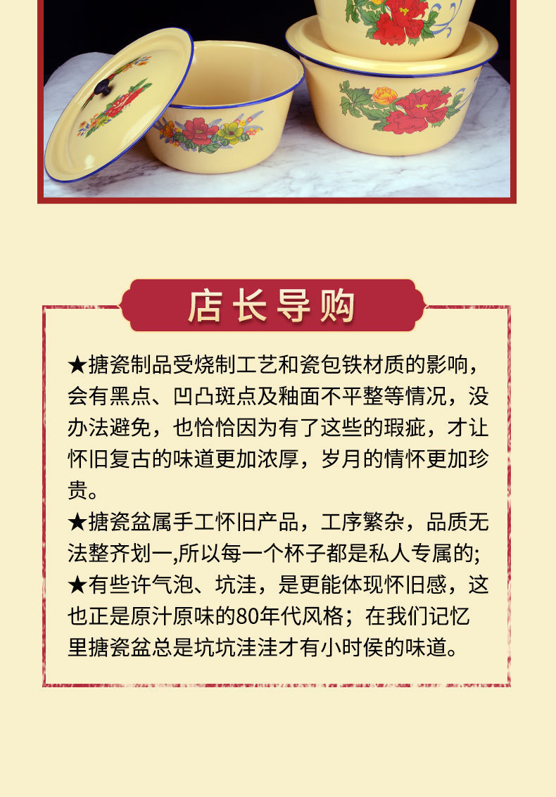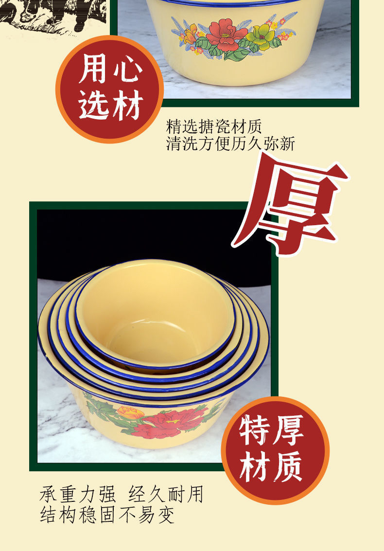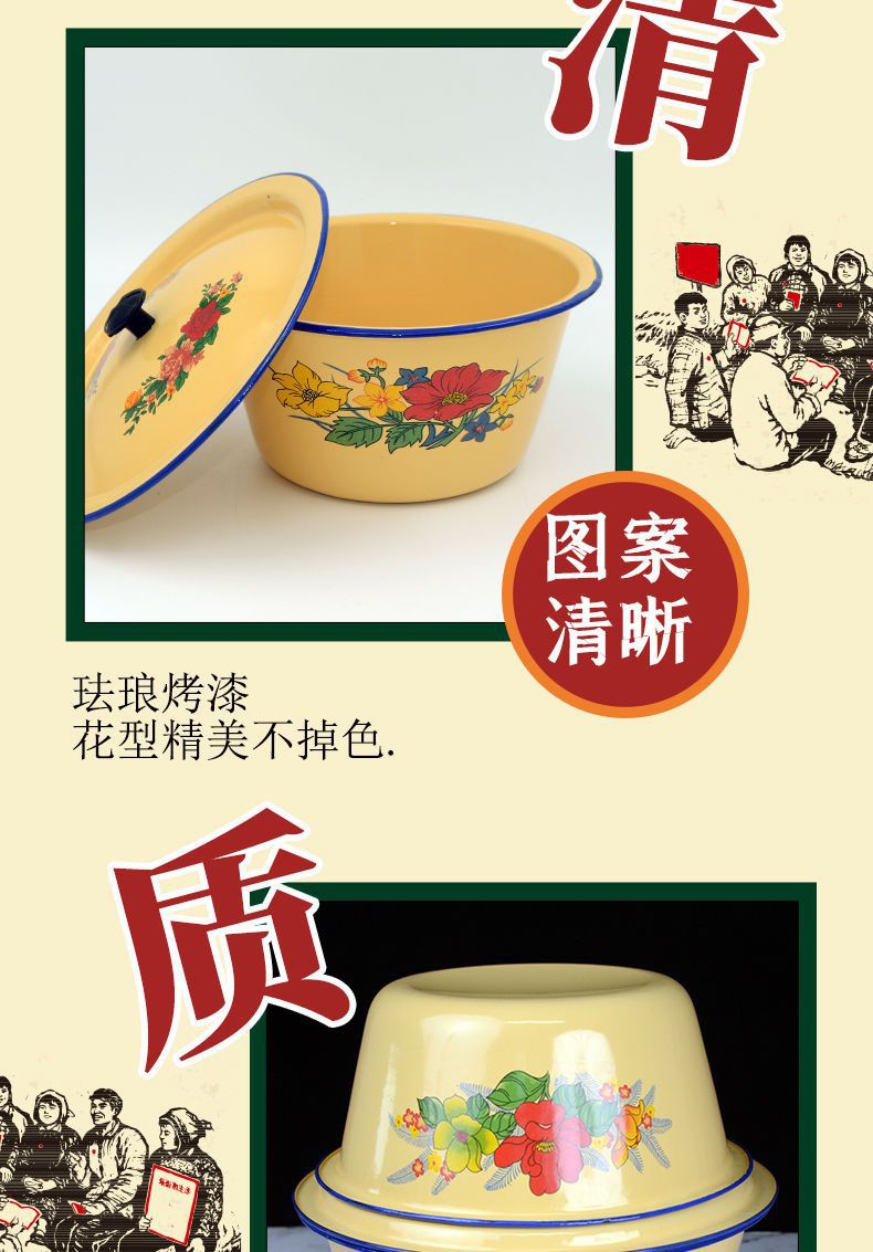 Mangkuk enamel bergaya antik dengan tutup, mangkuk menjaga kesegaran kue, panci sup tempat pangsit dan tali mie, baskom obat rebus