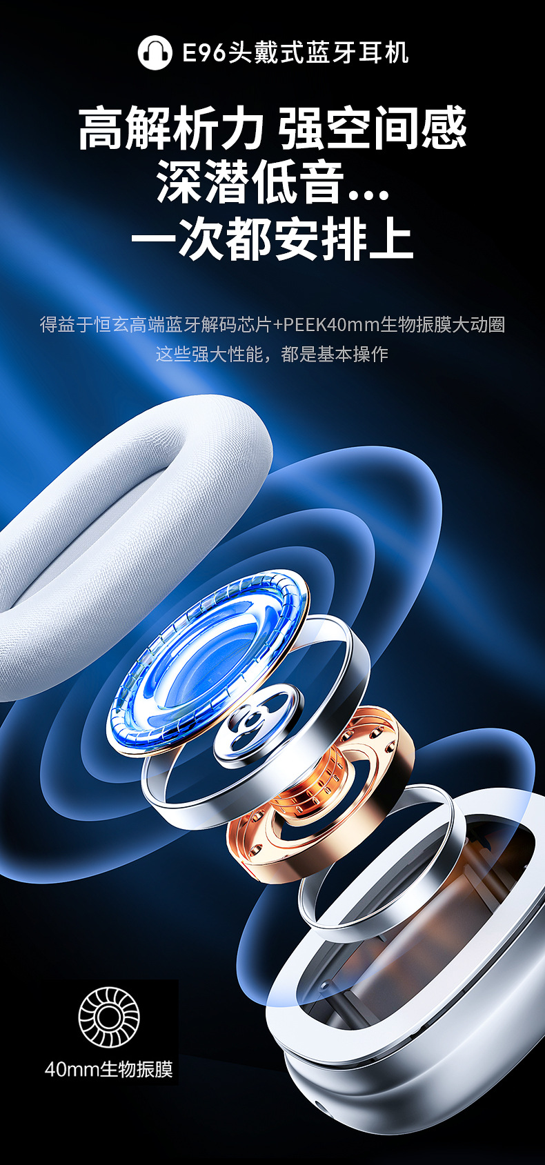 Headset Bluetooth nirkabel, headset baru tahan lama Bluetooth suara stereo cerdas pengurangan kebisingan olahraga sangat daya tahan tinggi