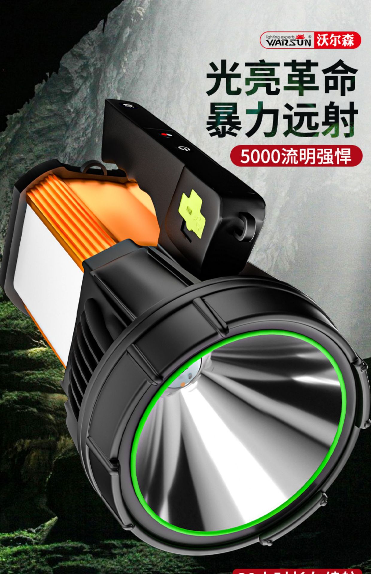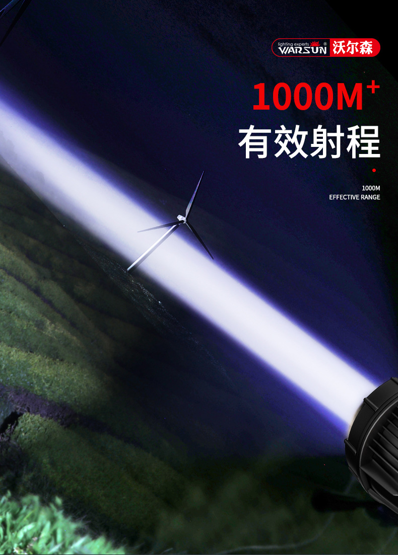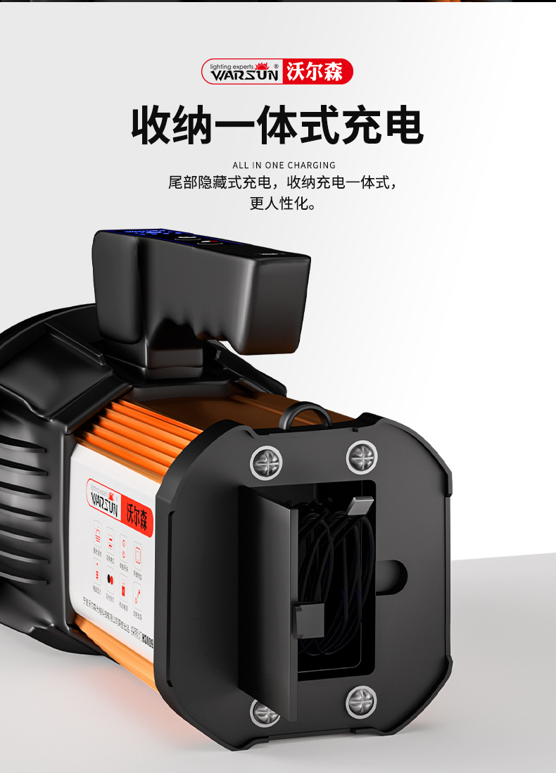 Senter Wolsen H3009 portabel untuk luar ruangan, rumah tangga, patroli, dapat diisi ulang, cahaya kuat, tahan air, portabel