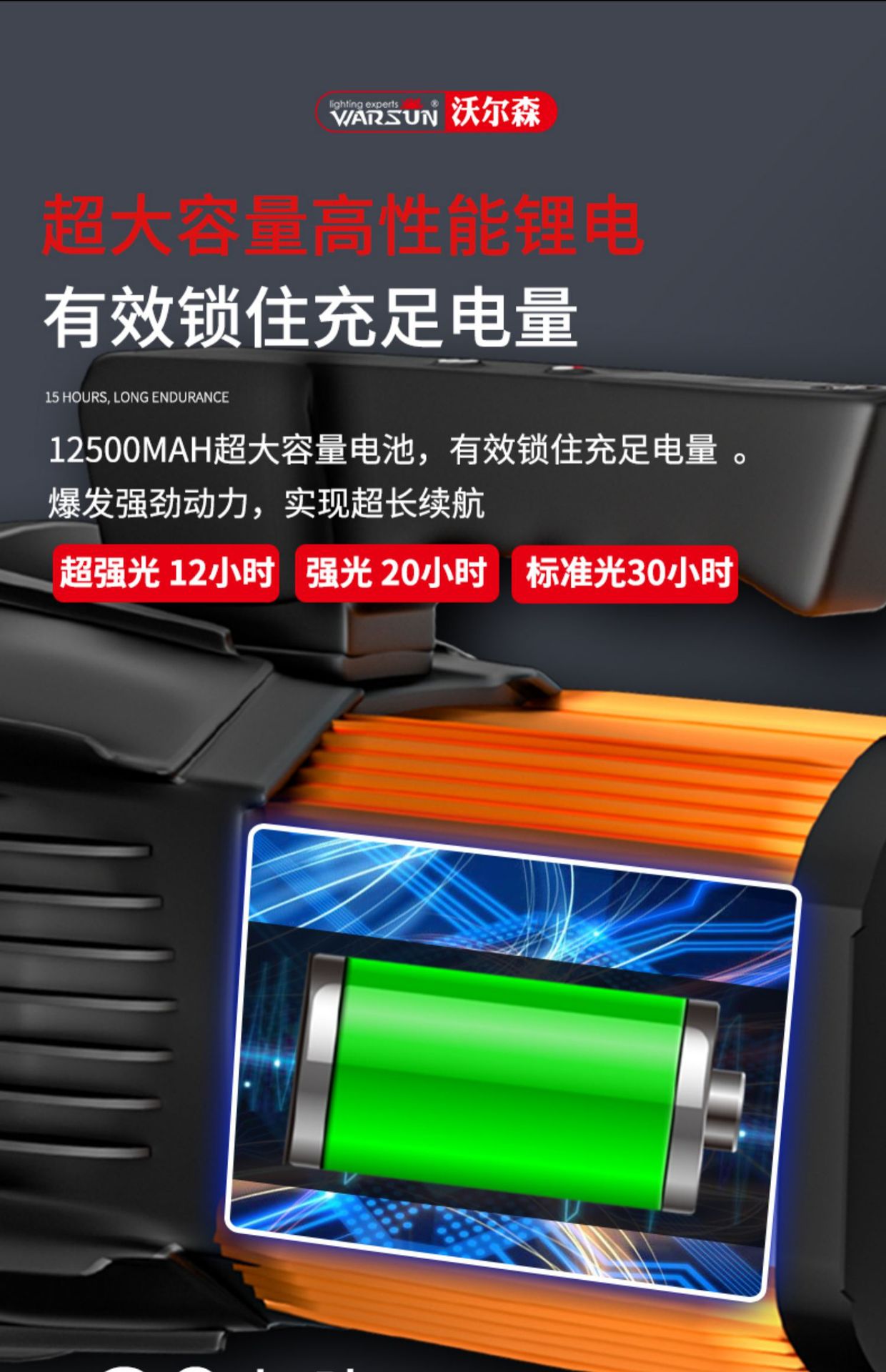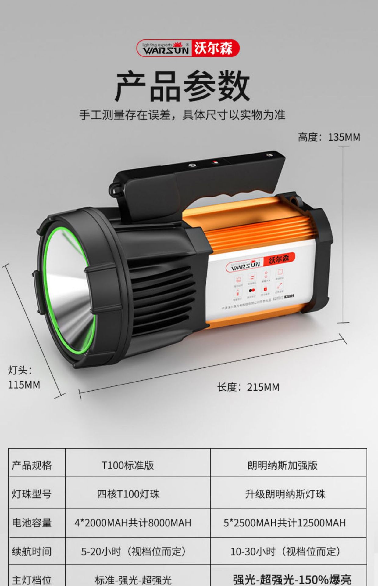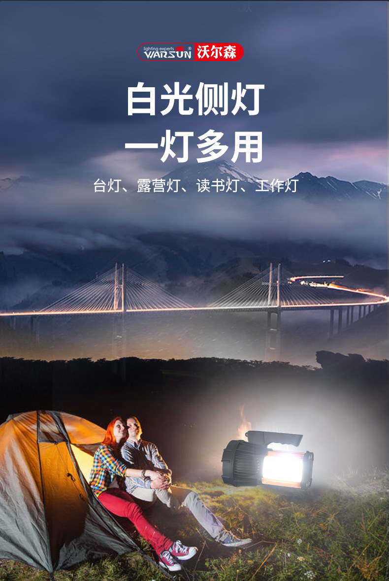 Senter Wolsen H3009 portabel untuk luar ruangan, rumah tangga, patroli, dapat diisi ulang, cahaya kuat, tahan air, portabel