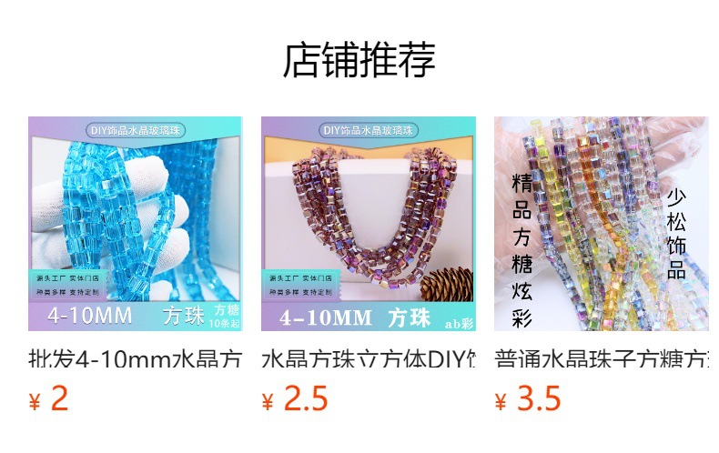 3A级水晶珠方糖方珠爆闪炫彩精品玻璃珠散珠串珠手工饰品DIY配件