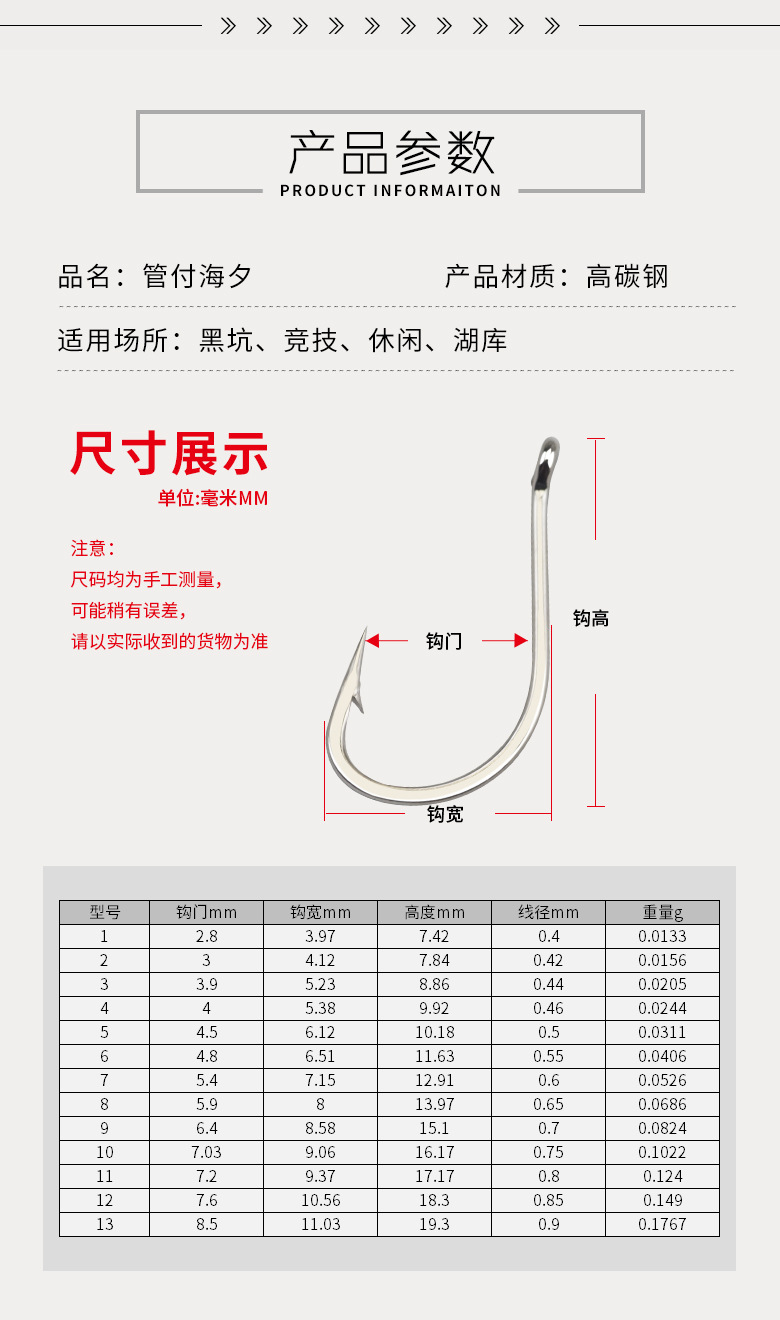 UMITANAGO kait pancing Haixi, dengan lubang kait memancing tabung Fu Haixi kait pancing perdagangan luar negeri perlengkapan memancing kait strip tipis