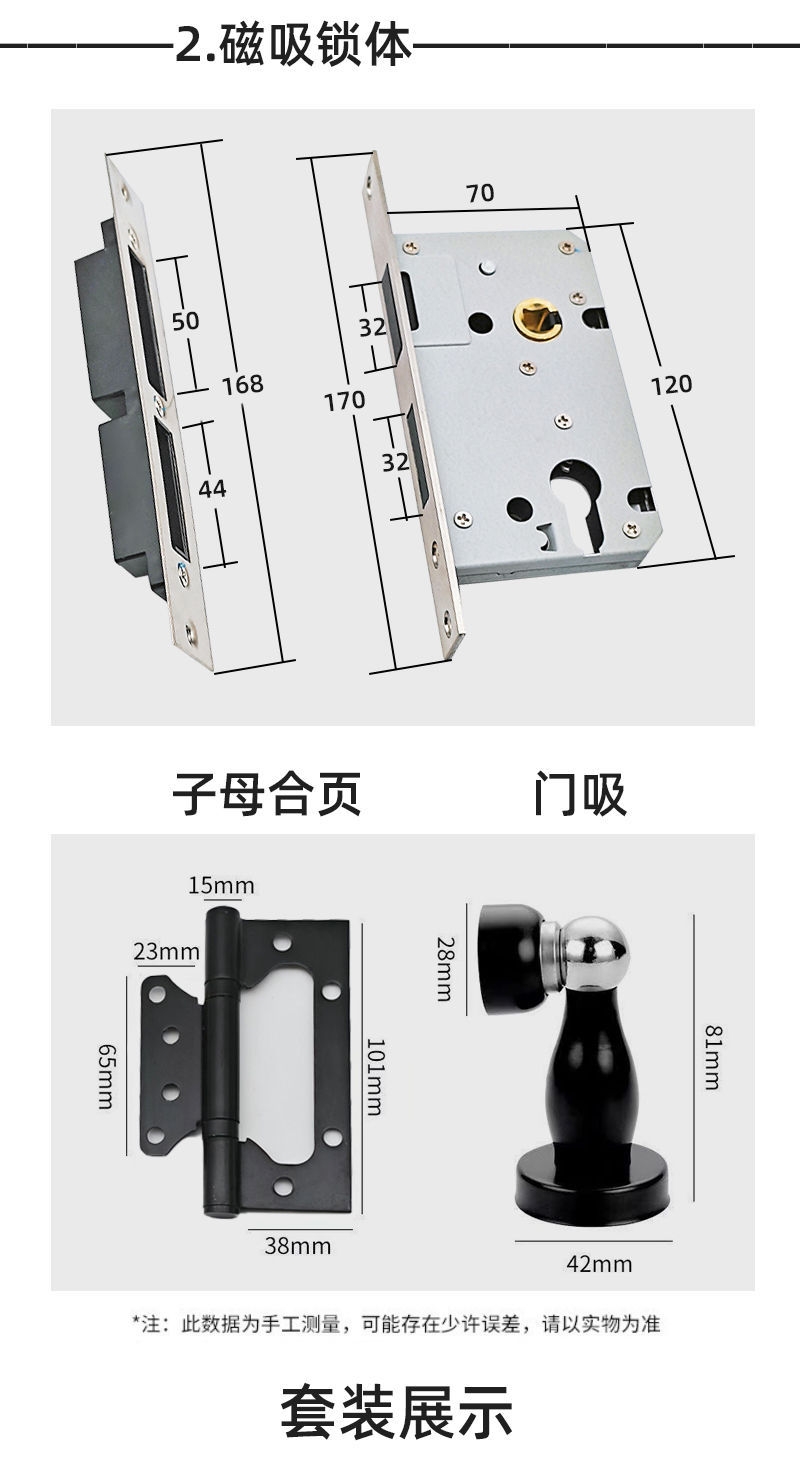 Kunci pintu dalam ruangan, kunci pintu dalam ruangan kamar tidur, kunci pintu kayu rumah tangga, kunci pintu setelan, kunci pintu magnetis bisu, kunci terpisah, 58