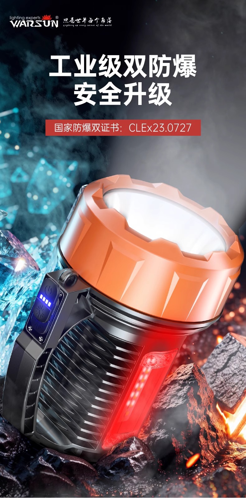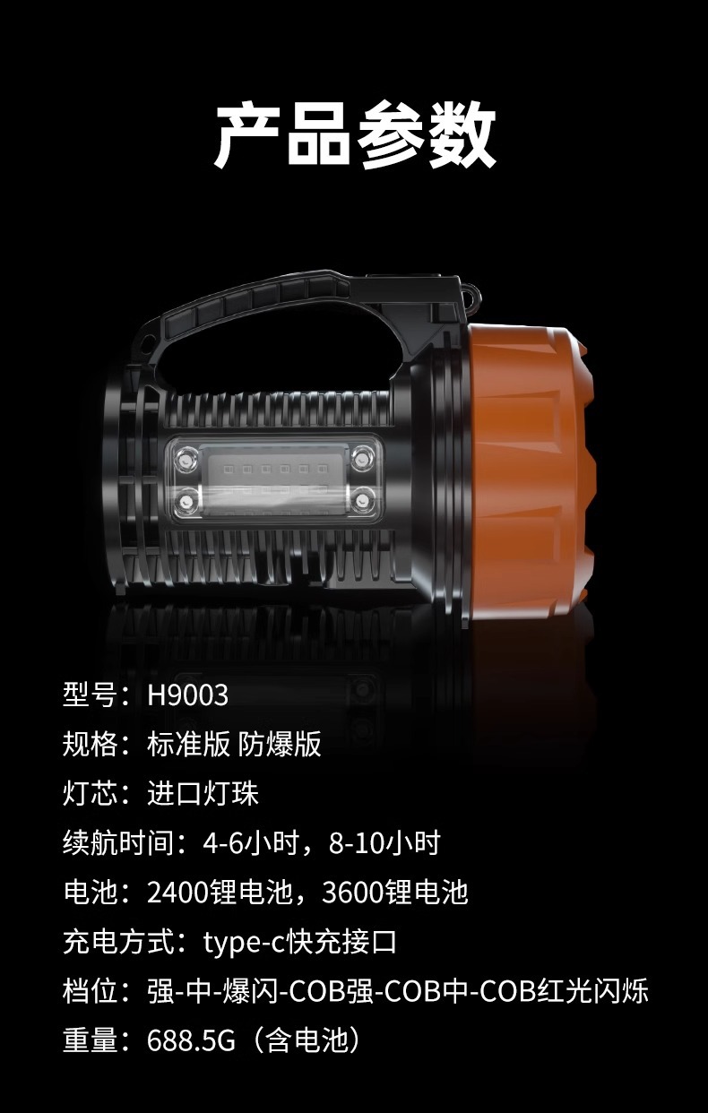 Walson H9003 senter lampu sorot tahan ledakan lampu led kuat portabel pengisian daya tahan lama penjualan langsung dari pabrik