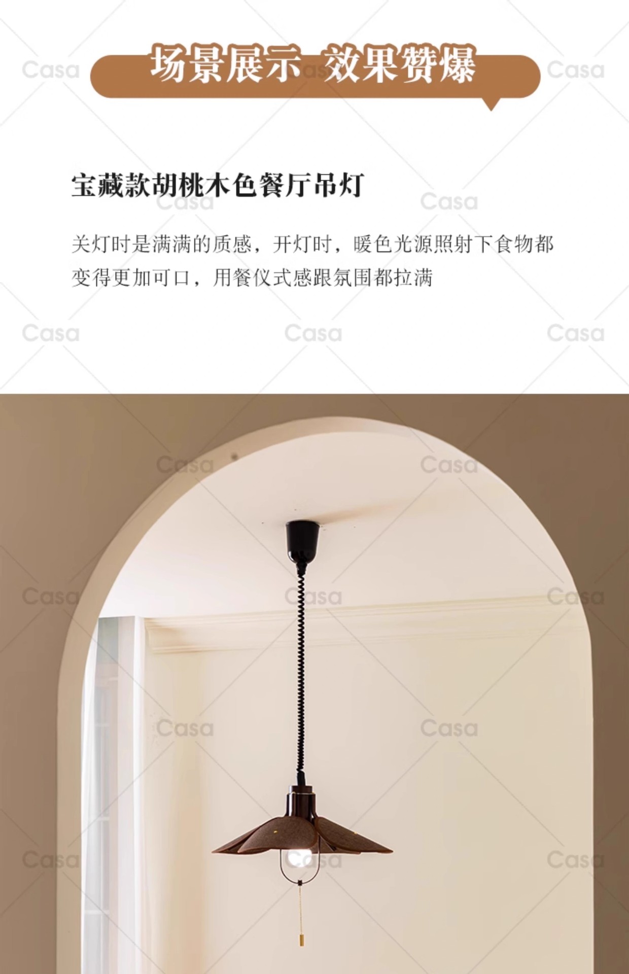 Lampu Gantung Restoran Kayu Solid Gaya Wabi-sabi, Lampu Dapat Ditarik Bar Meja Makan Tempat Menginap Abad Pertengahan, Lampu Gantung Ruang Teh Log Retro Zen