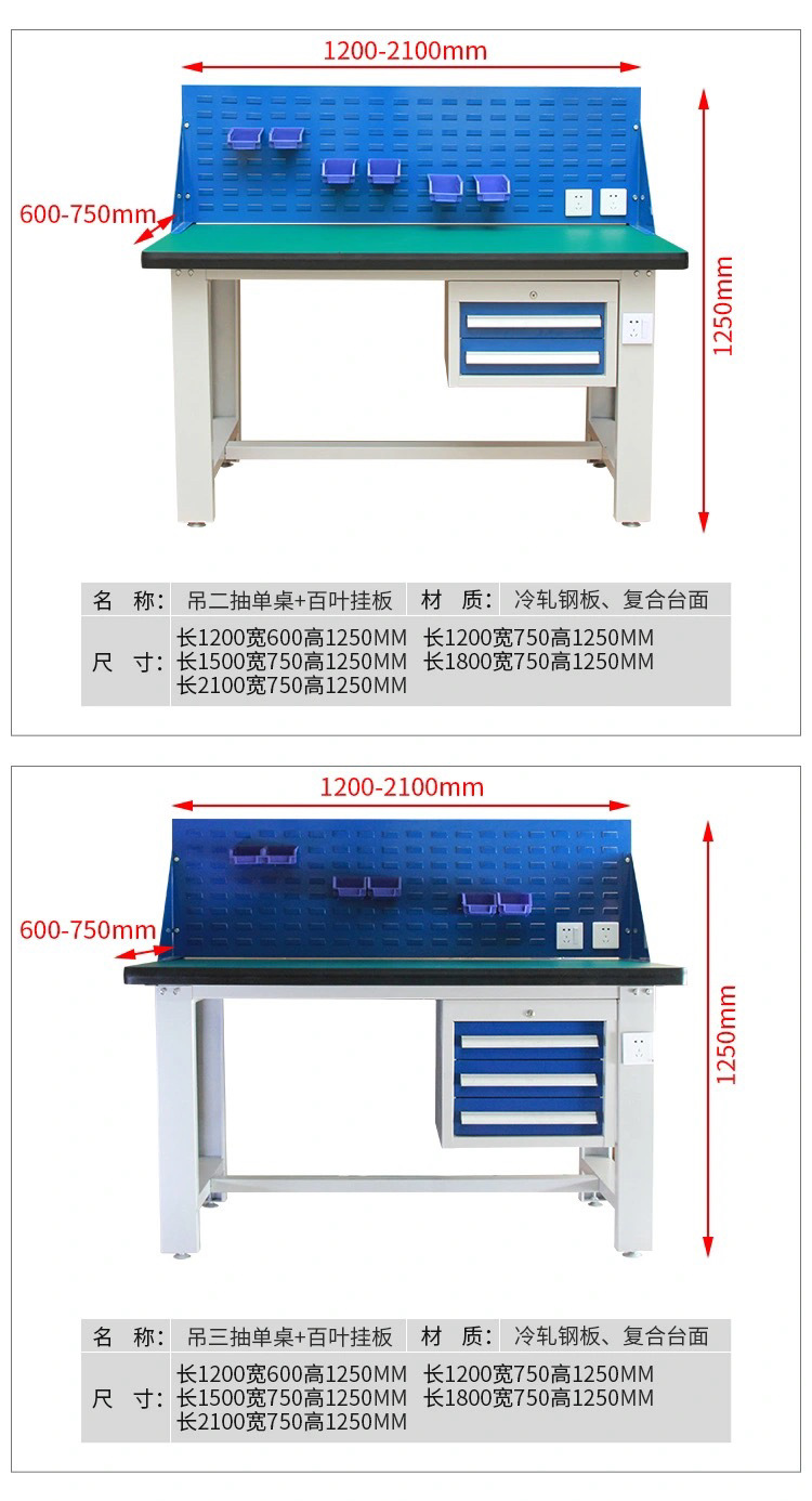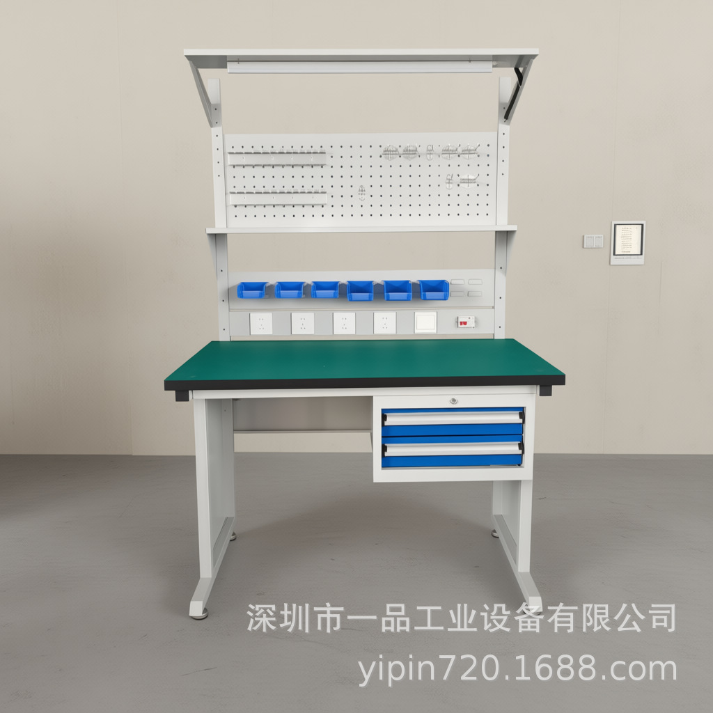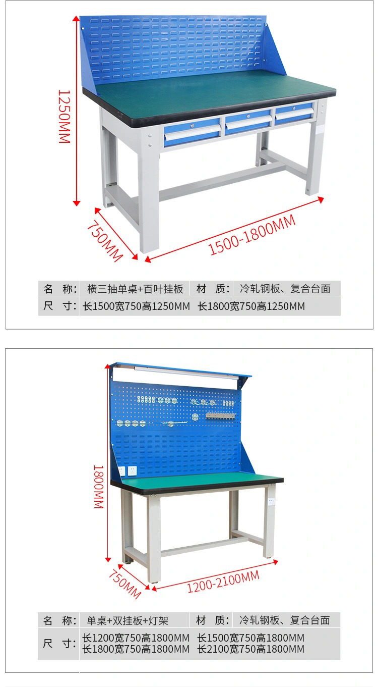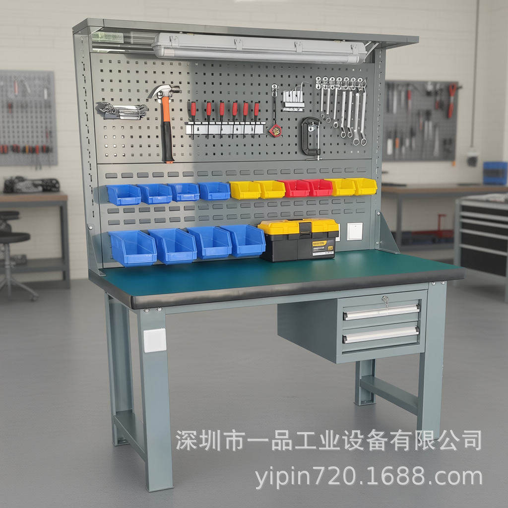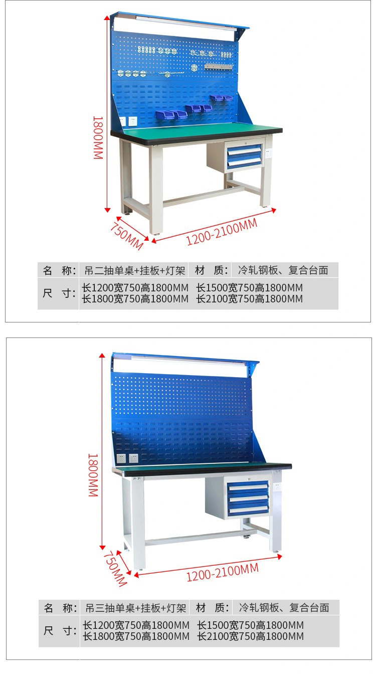 Meja kerja anti-statis multifungsi dua laci dengan papan gantung, meja kerja perbaikan tugas berat, meja tukang komposit