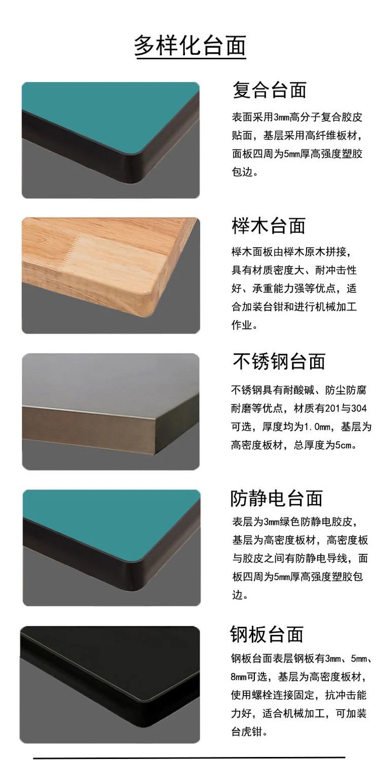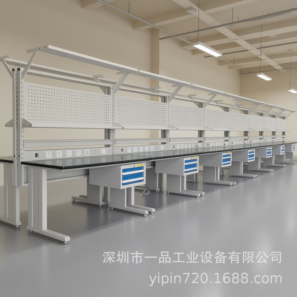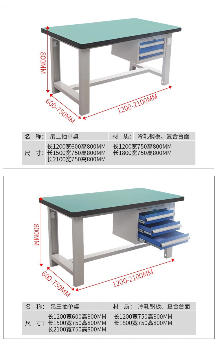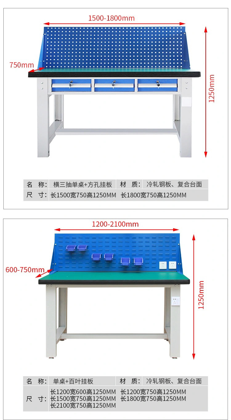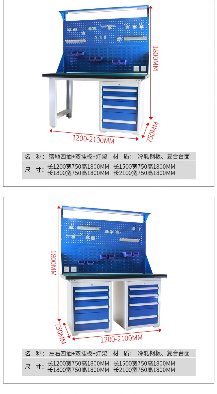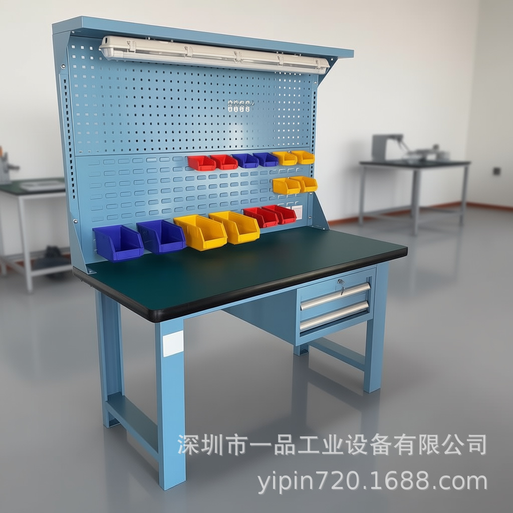 Meja kerja anti-statis multifungsi dua laci dengan papan gantung, meja kerja perbaikan tugas berat, meja tukang komposit