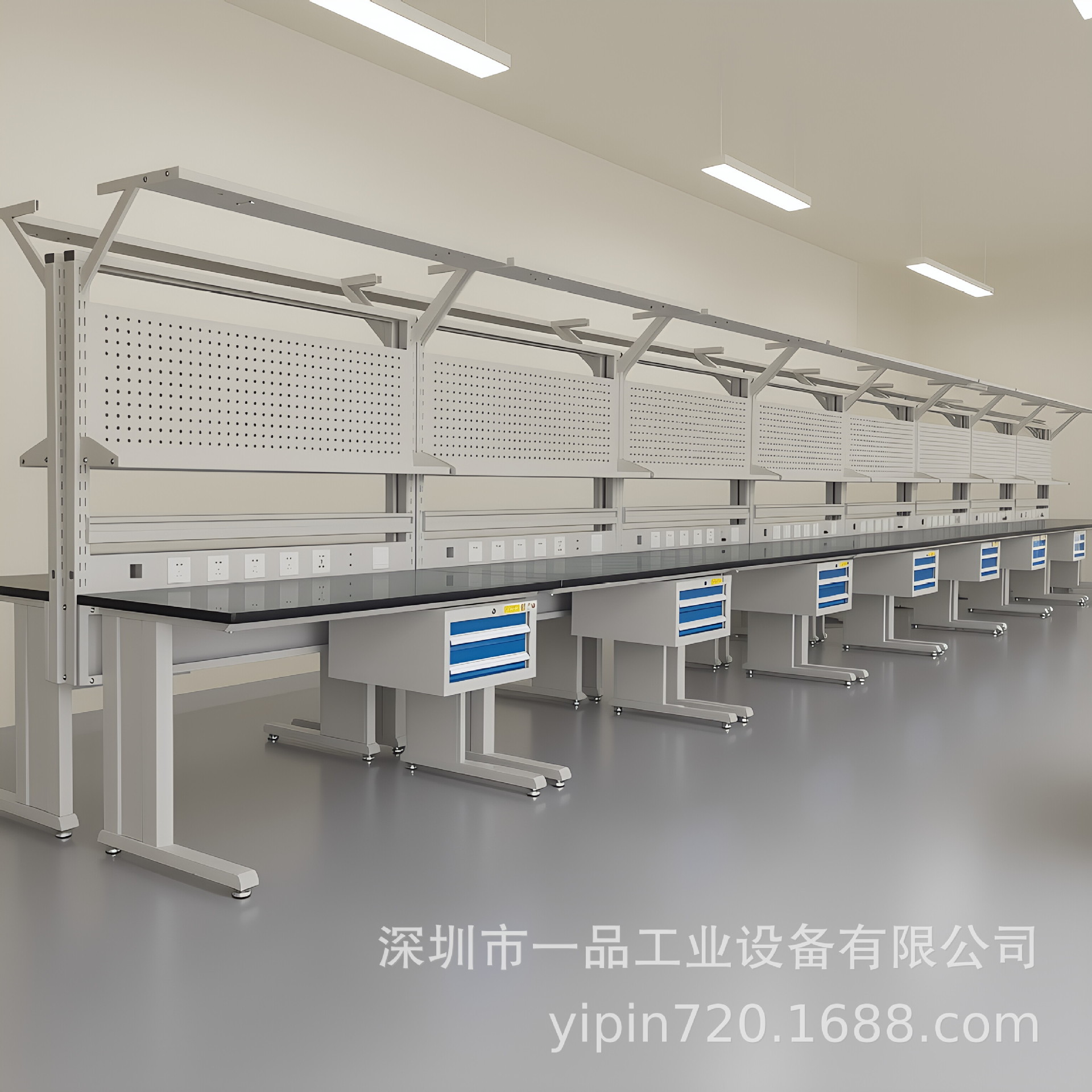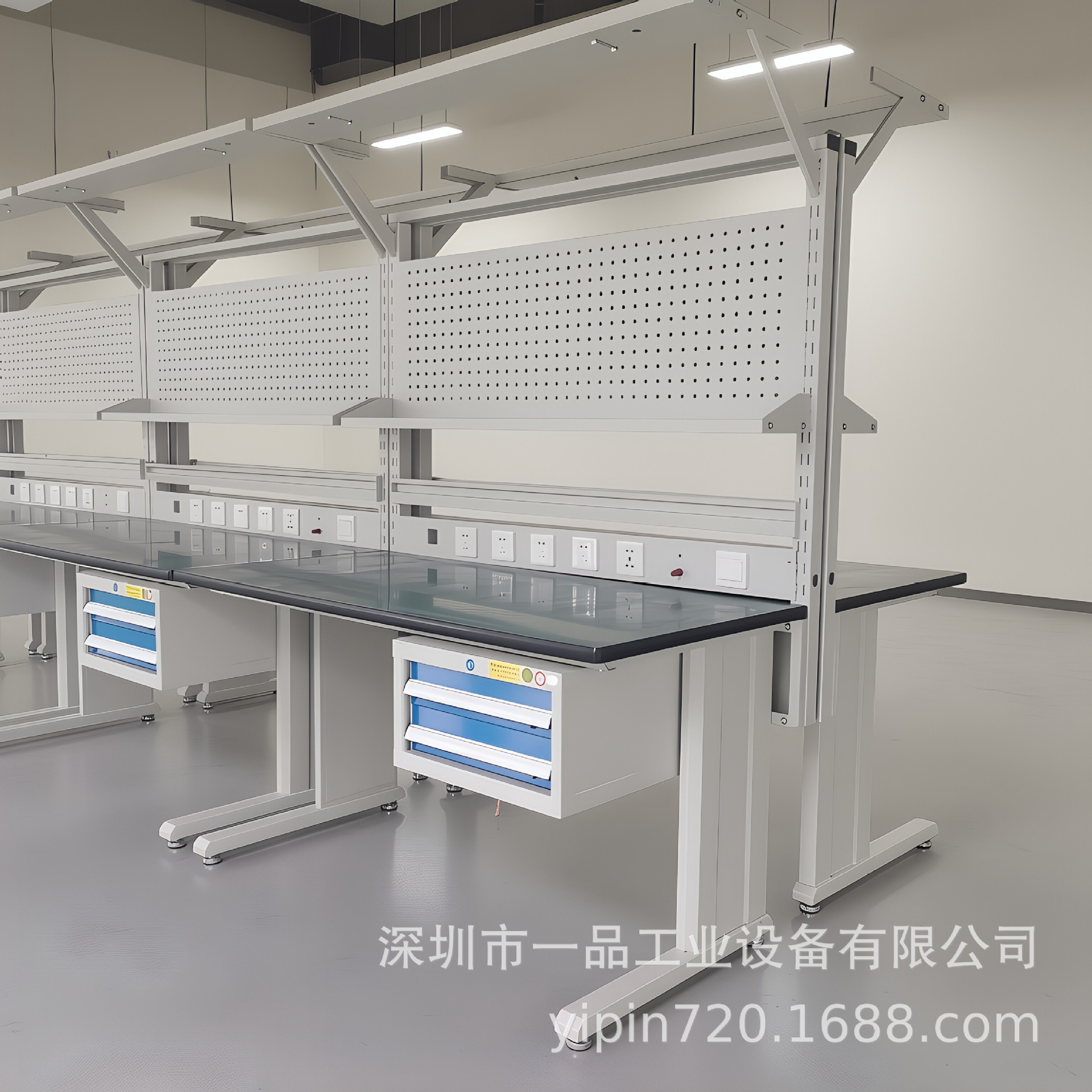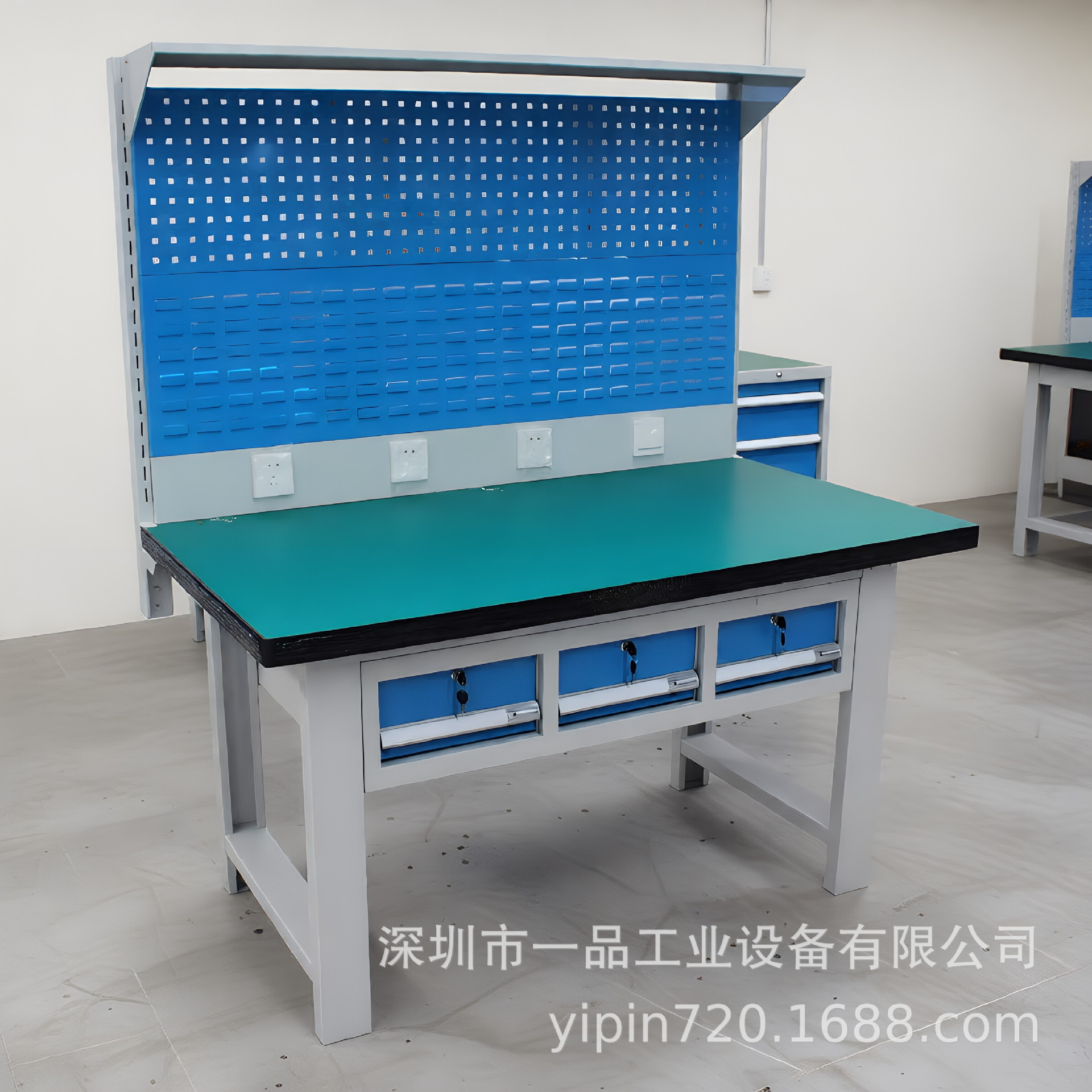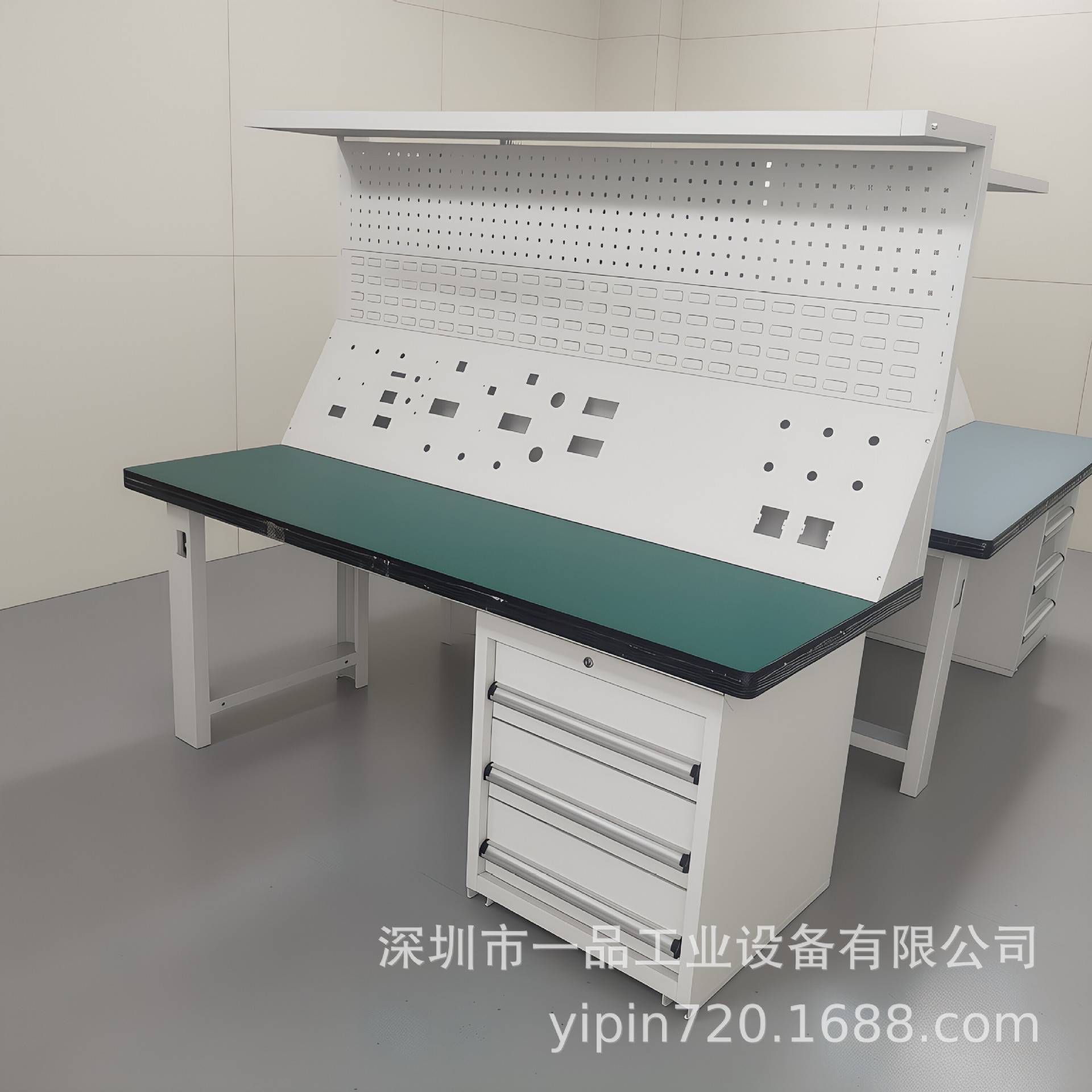 Meja kerja anti-statis multifungsi dua laci dengan papan gantung, meja kerja perbaikan tugas berat, meja tukang komposit