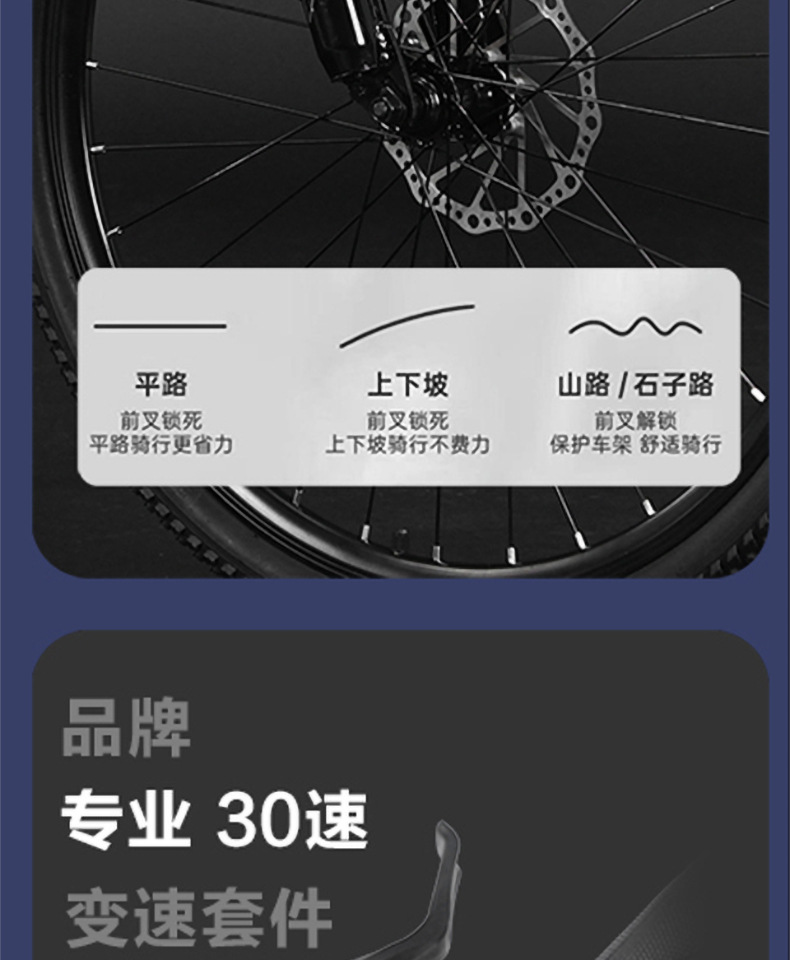 山地自行车轻便减震越野男款女学生碟刹上下学代步运动自行车