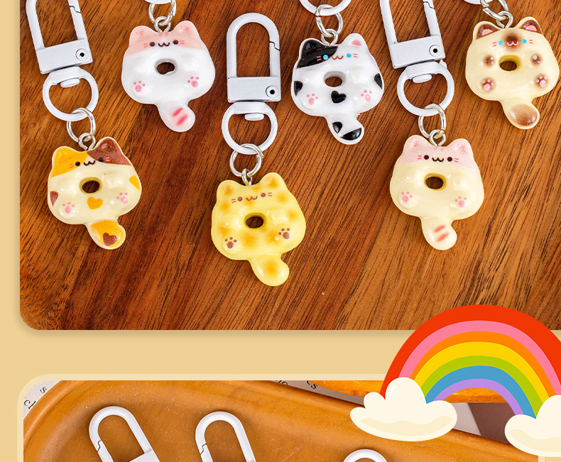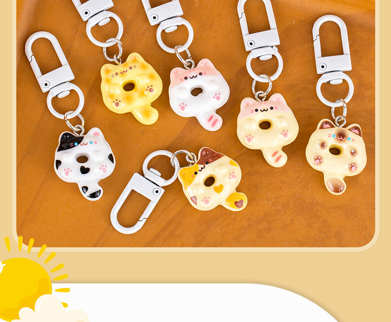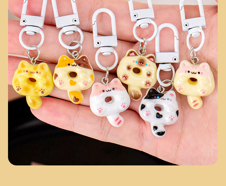 Gantungan Kunci Donat Kucing Lucu Tas Earphone Mainan Makanan Kucing Kartun Mini Imitasi