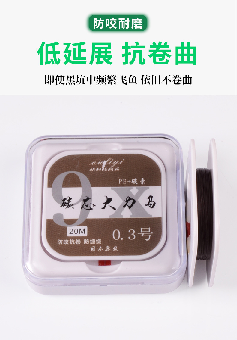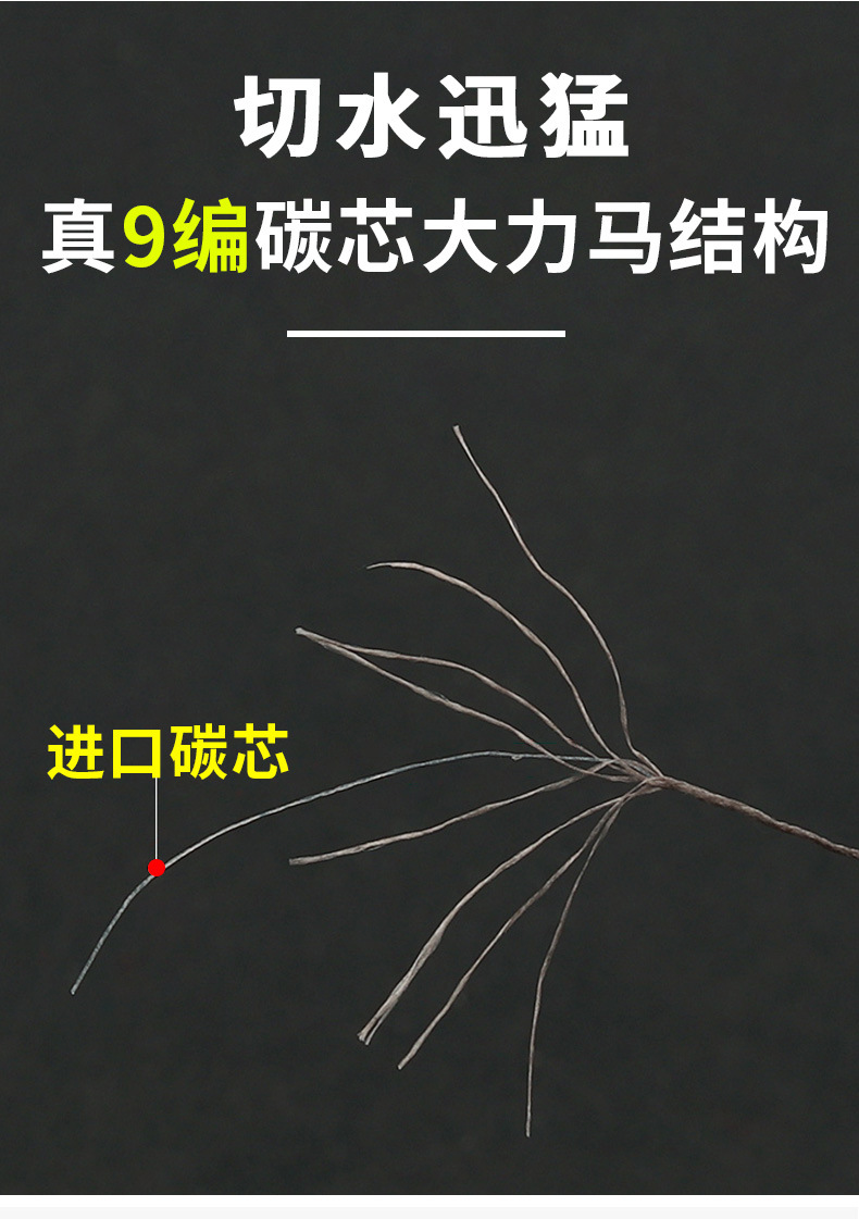 Senar pancing ikan mas, perlengkapan memancing, inti karbon, khusus untuk ikan Dali horse (fish), senar PE leader, black pit fly fishing, alat pancing kuat, kekuatan tinggi.