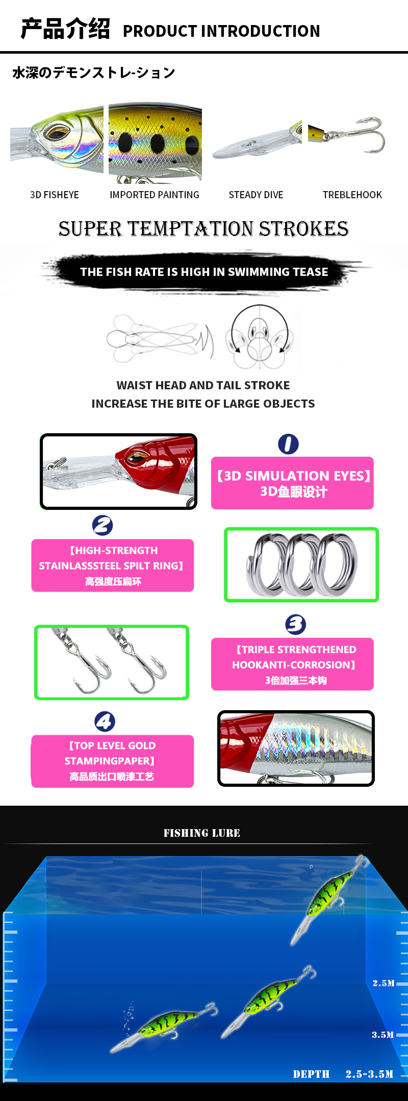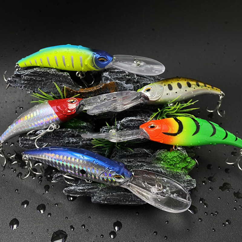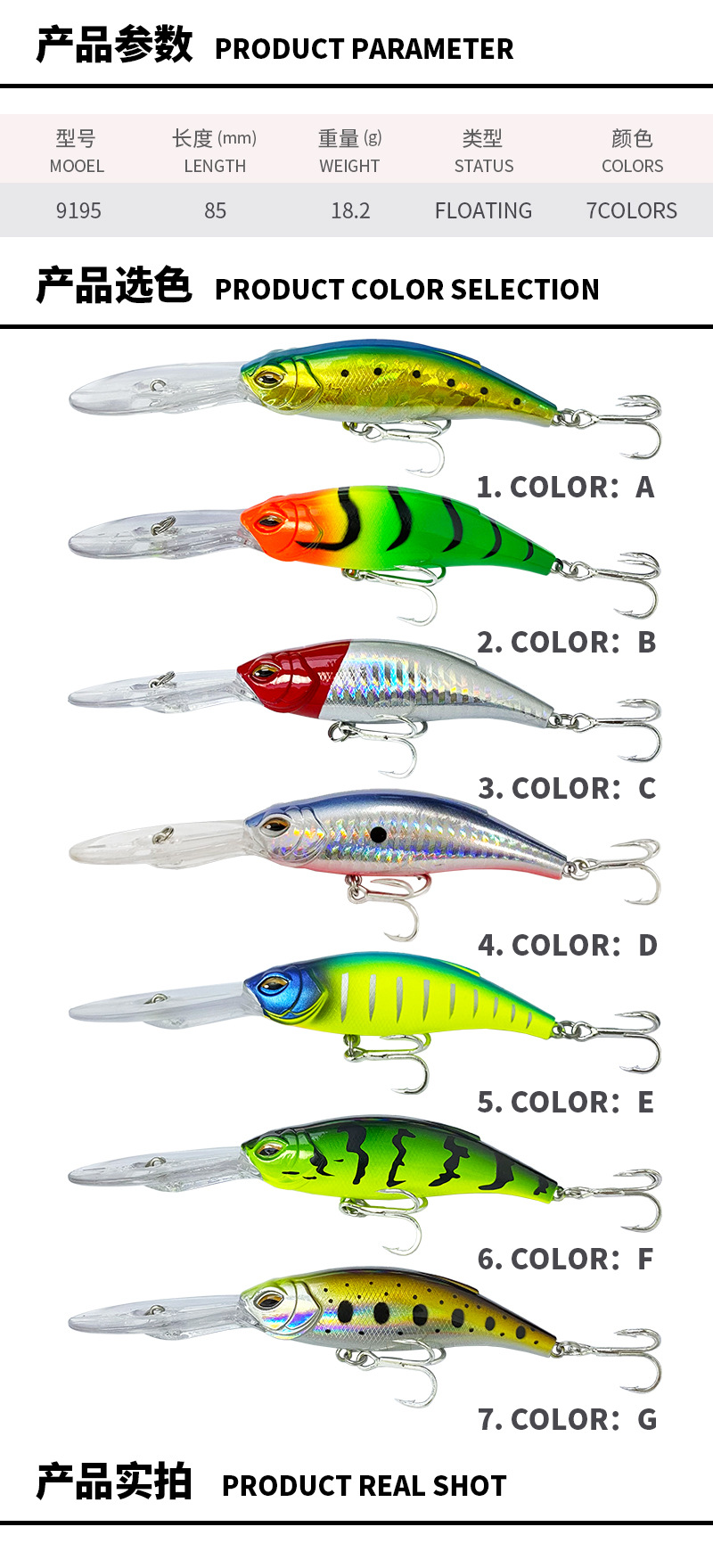Umpan Mino Air Mengambang Model Baru 85mm/18.2g Lidah Panjang Mengangkat Mulut Putih Umpan Ikan Air Tawar 9195 Warna Baru