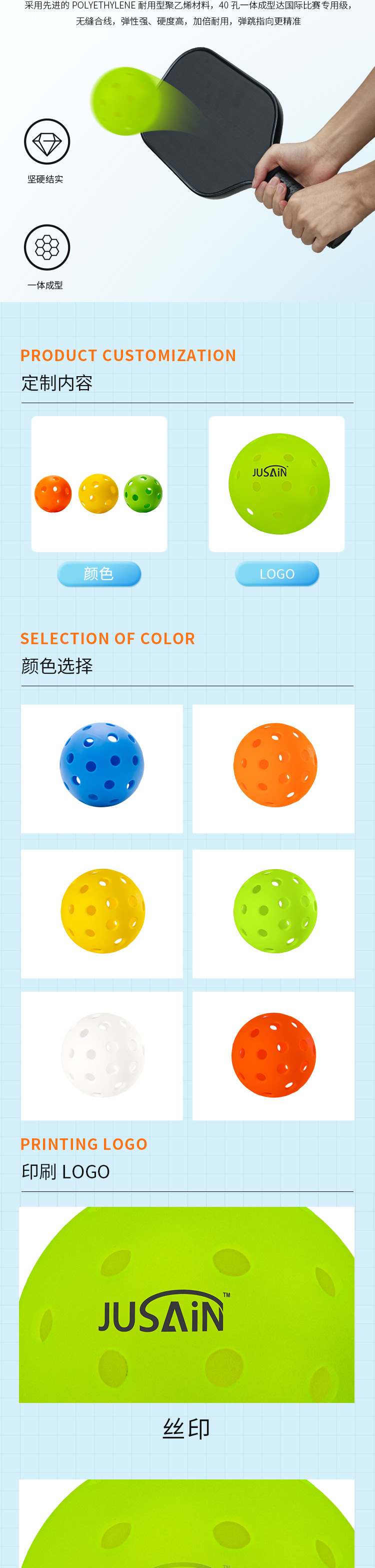 Grosir lintas batas bola Pike PE terintegrasi bola mulus rotasi bola plastik elastis TPE bola pilih bercahaya 40 lubang