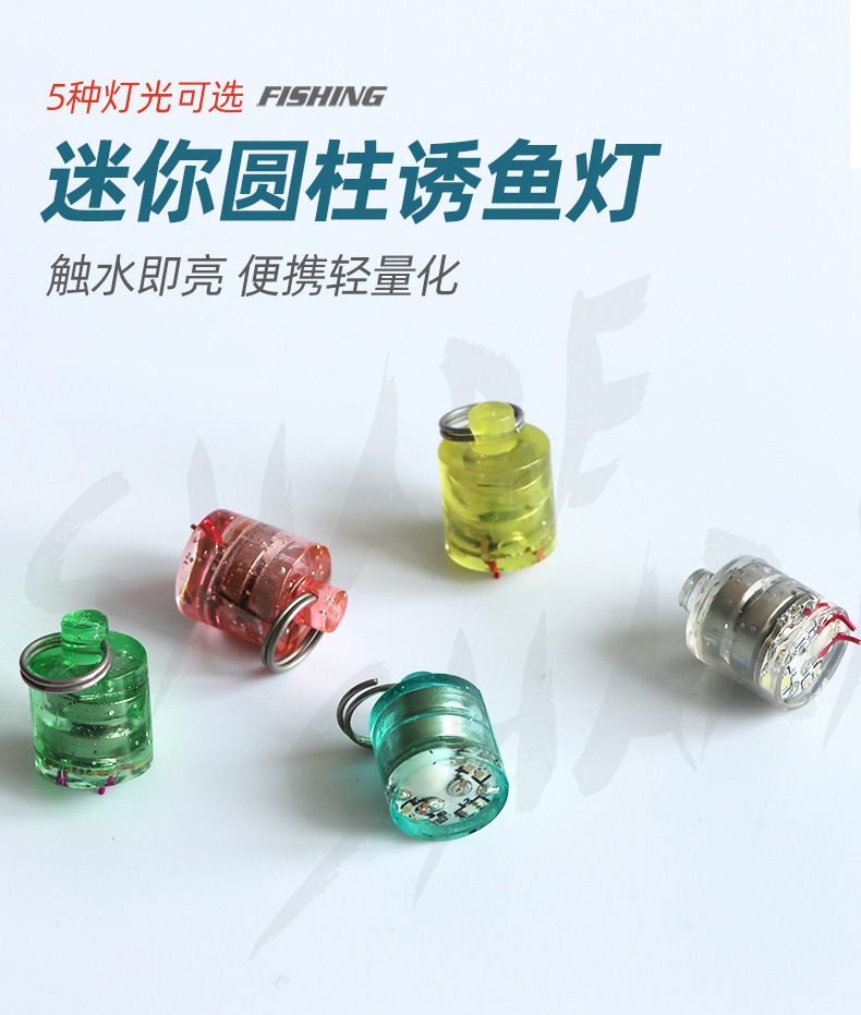 Grosir lampu umpan pancing tombol silinder mini, lampu memancing, lampu elektronik LED bawah air Luya, lampu umpan