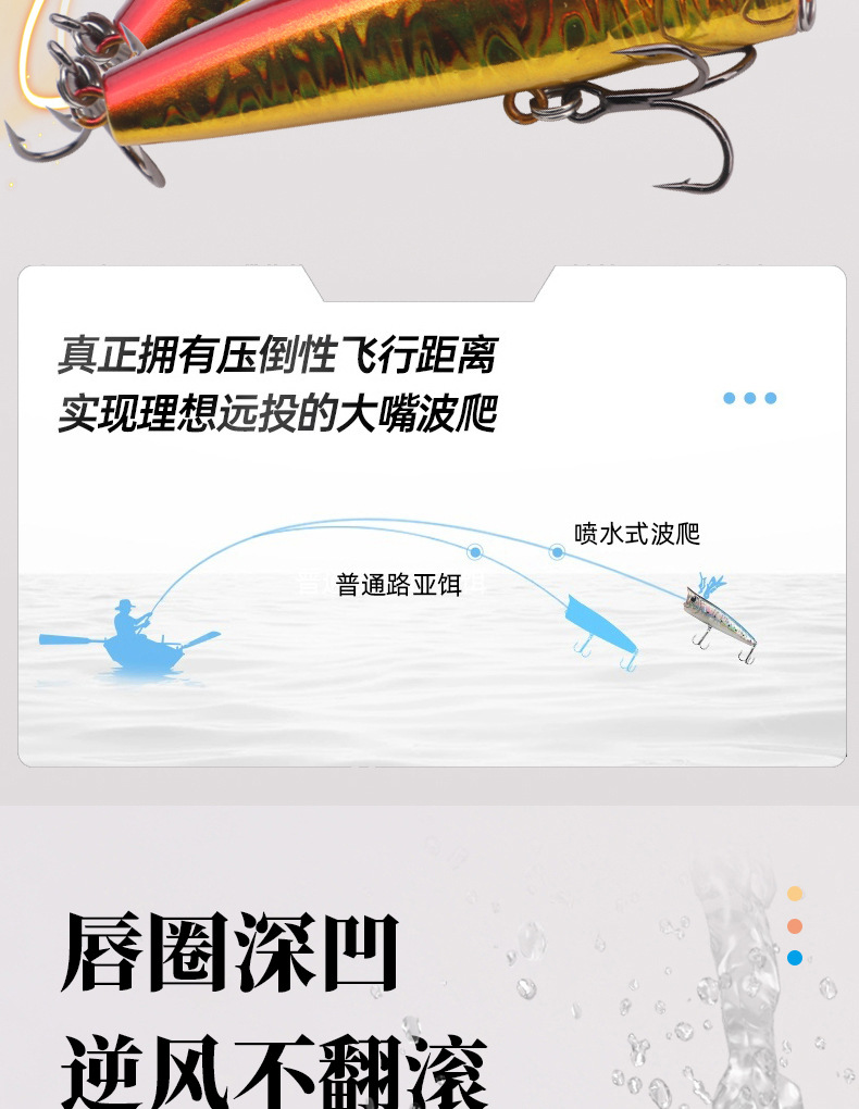 Perlengkapan memancing Luya umpan permukaan air seri mengambang Mino semprotan air tabrakan gelombang air mendaki 9g14g manik-manik bass ikan Mandarin makarel