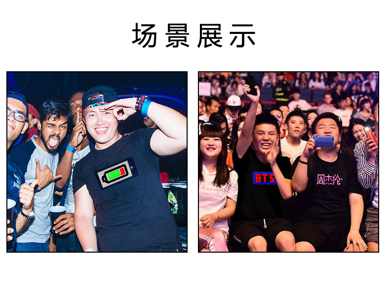 Layar pakaian LED, kaos bercahaya trendi untuk selebgram, layar teks bergulir untuk bar dan klub malam dengan kecerahan tinggi