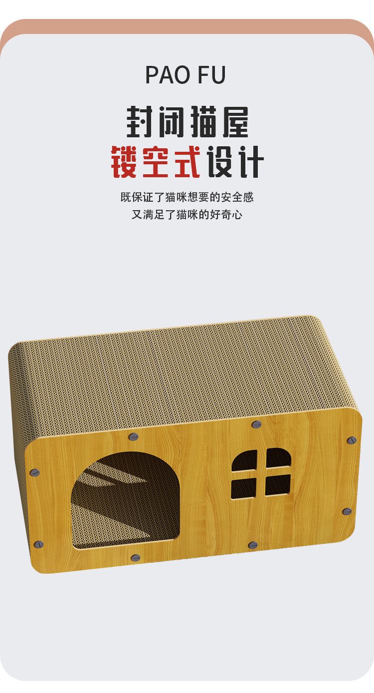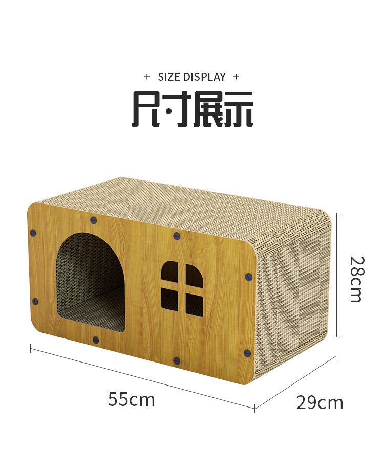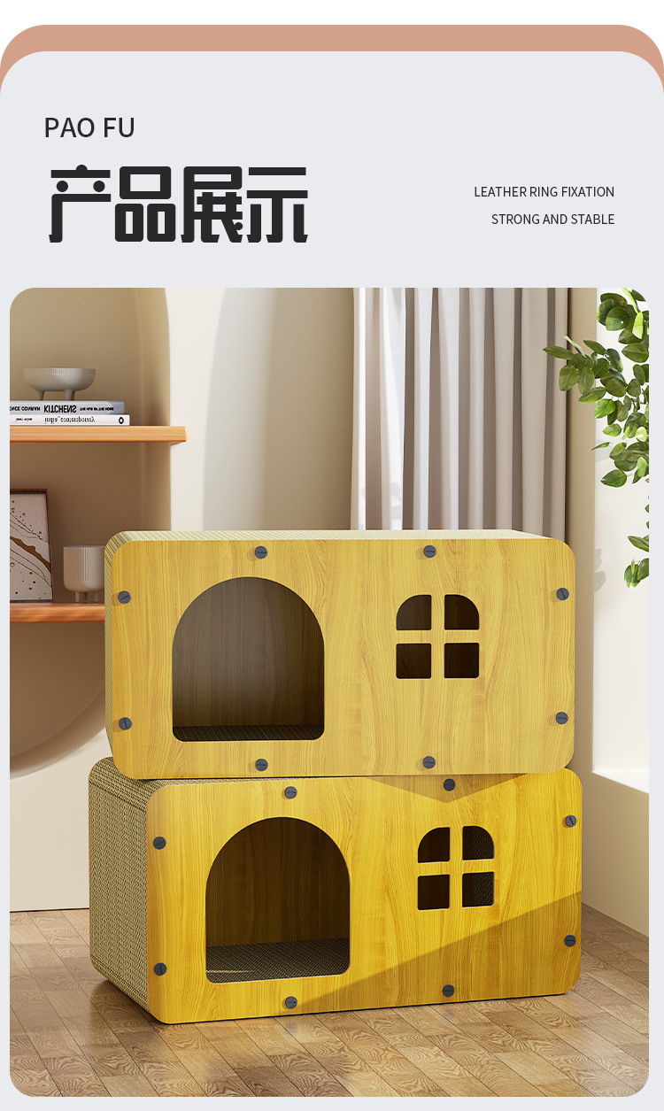 Vila rumah kucing yang luas, dapat ditumpuk, cocok untuk semua musim, dengan papan garukan kucing kayu terintegrasi, universal untuk semua musim.
