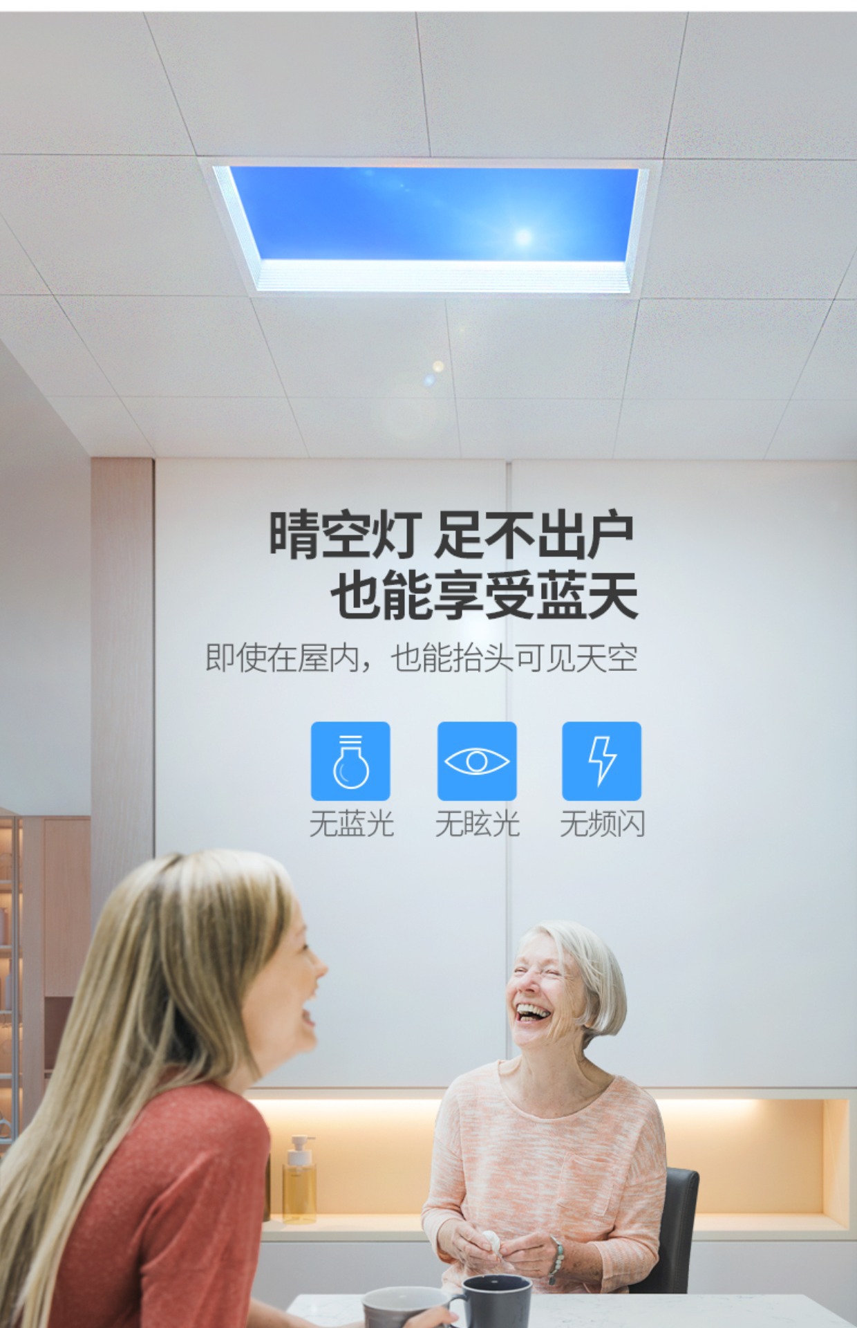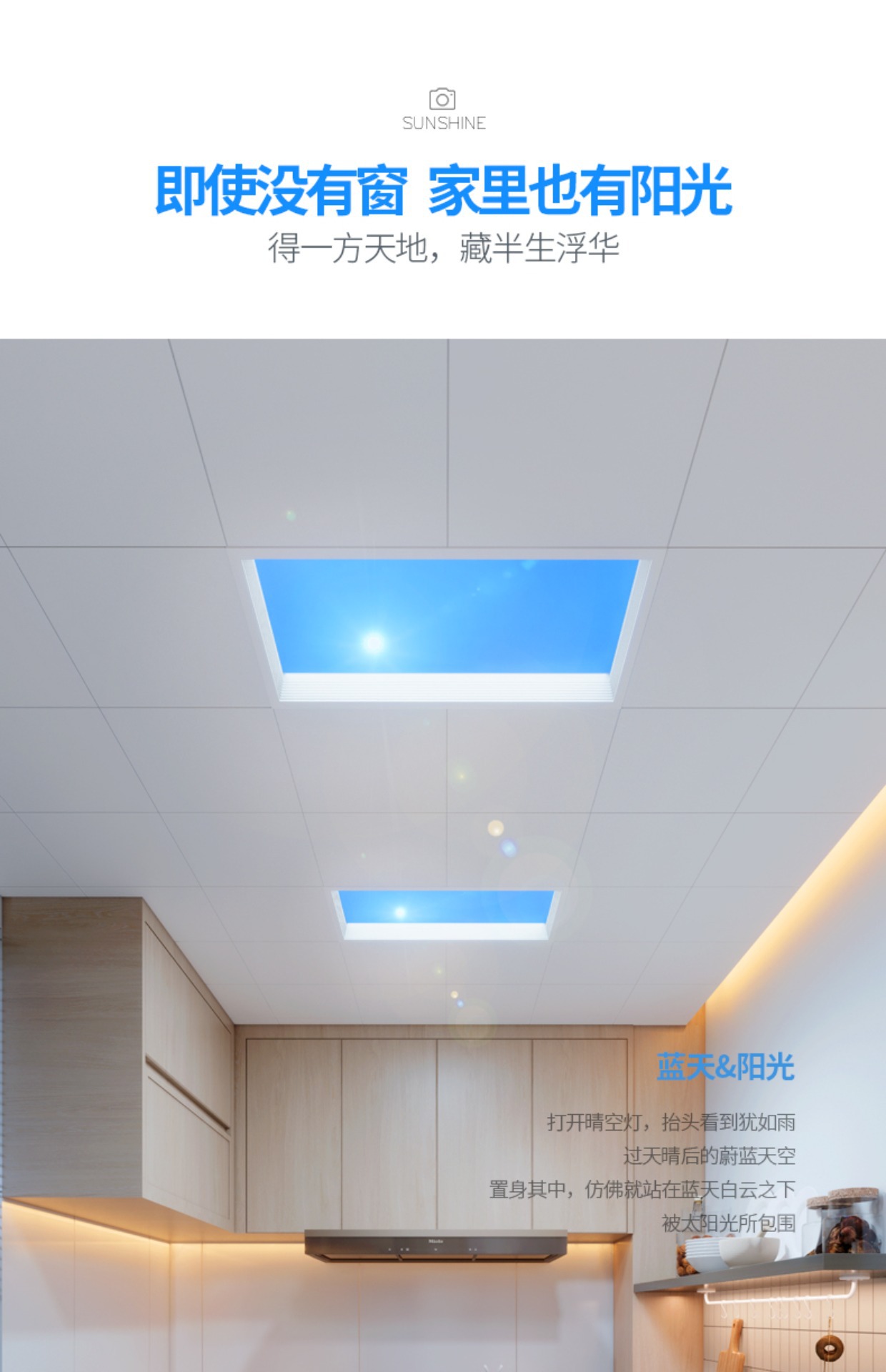 Lampu langit-langit imitasi matahari imitasi generasi ketiga ultra-tipis lampu langit-langit pintar lampu langit-langit cahaya biru cahaya alami skylight
