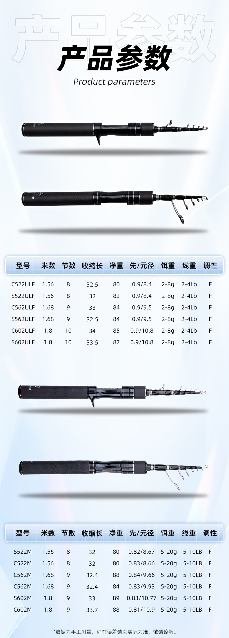 4.鱼竿采用超短多节设计,收缩短,携带更方便
