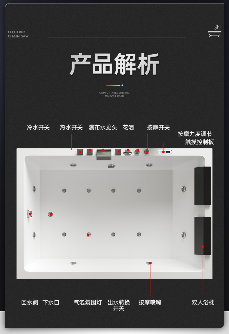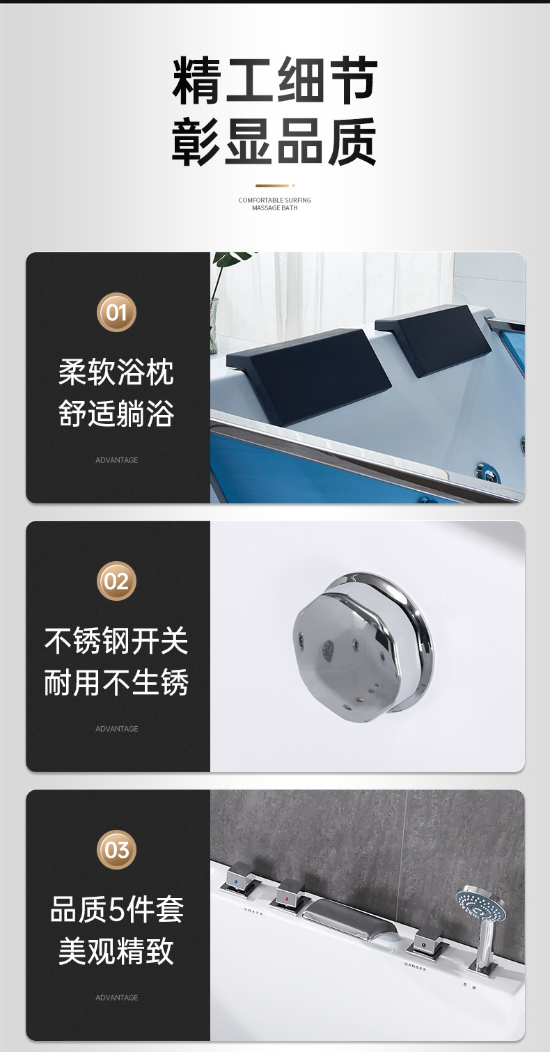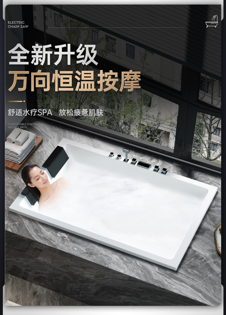 Quin bak mandi pasangan ganda, bak mandi hotel villa akrilik tertanam pijat rumah suhu konstan Internet selebriti