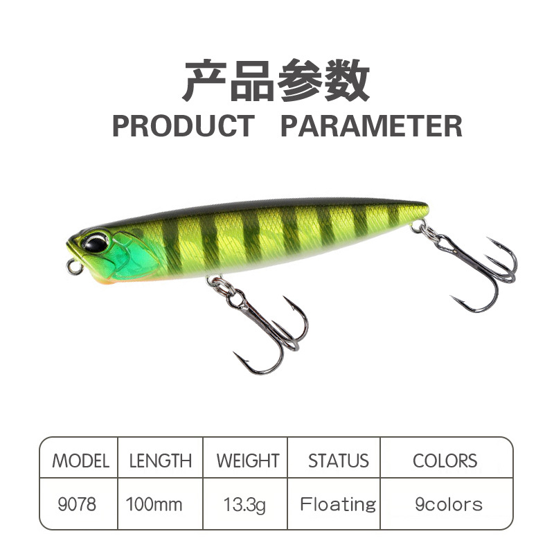 Gaya Jepang Pensil Air Mengambang Umpan Jalan 100mm/13.3g Sistem Permukaan Air Pensil Ikan Umpan 9078