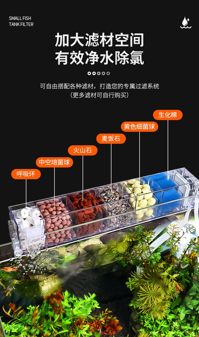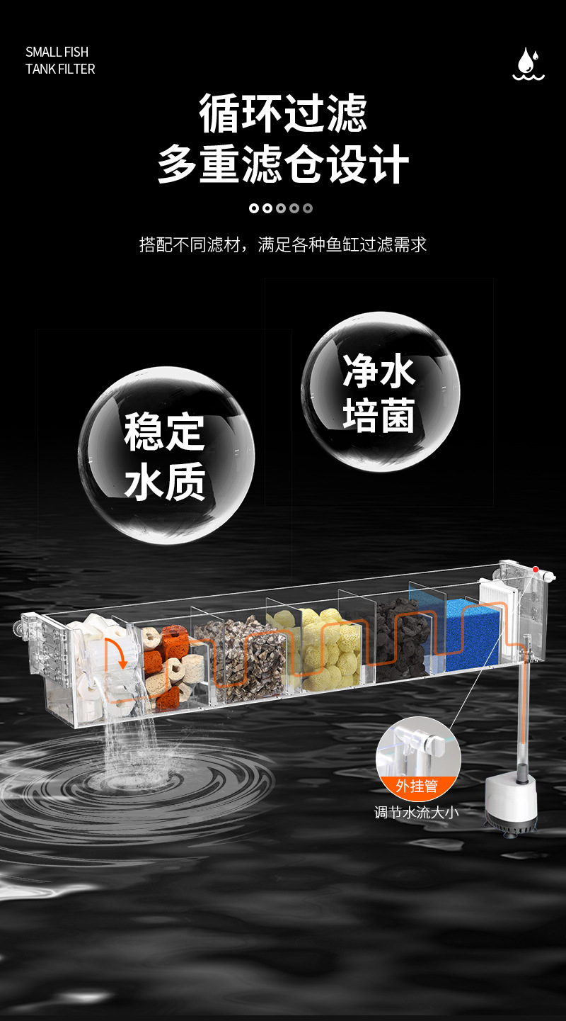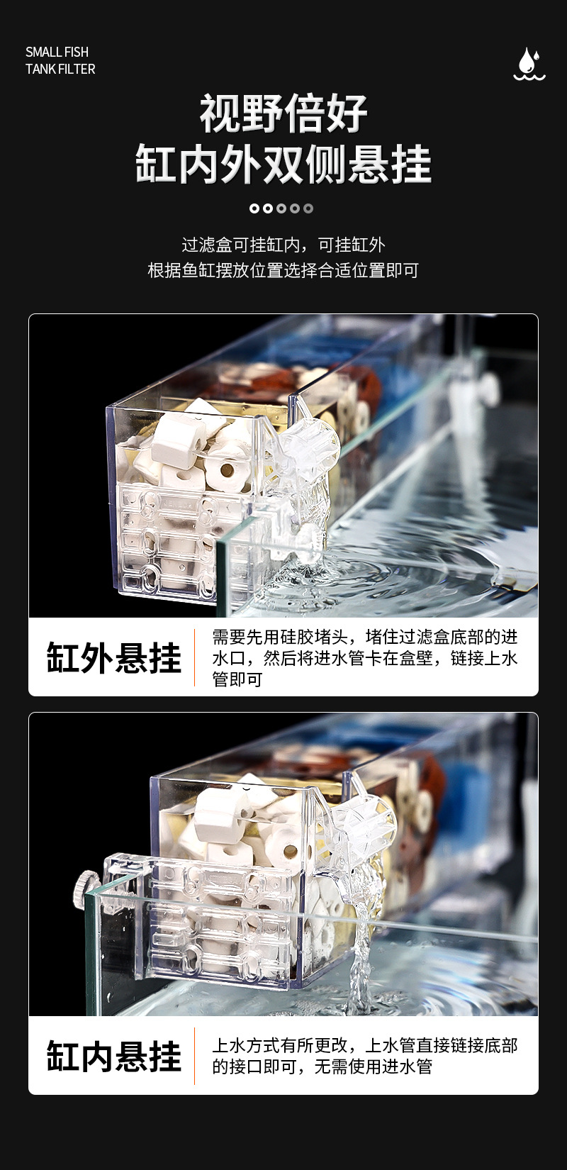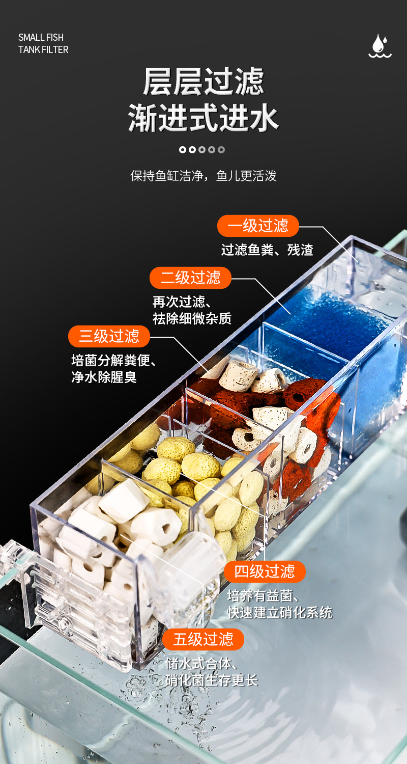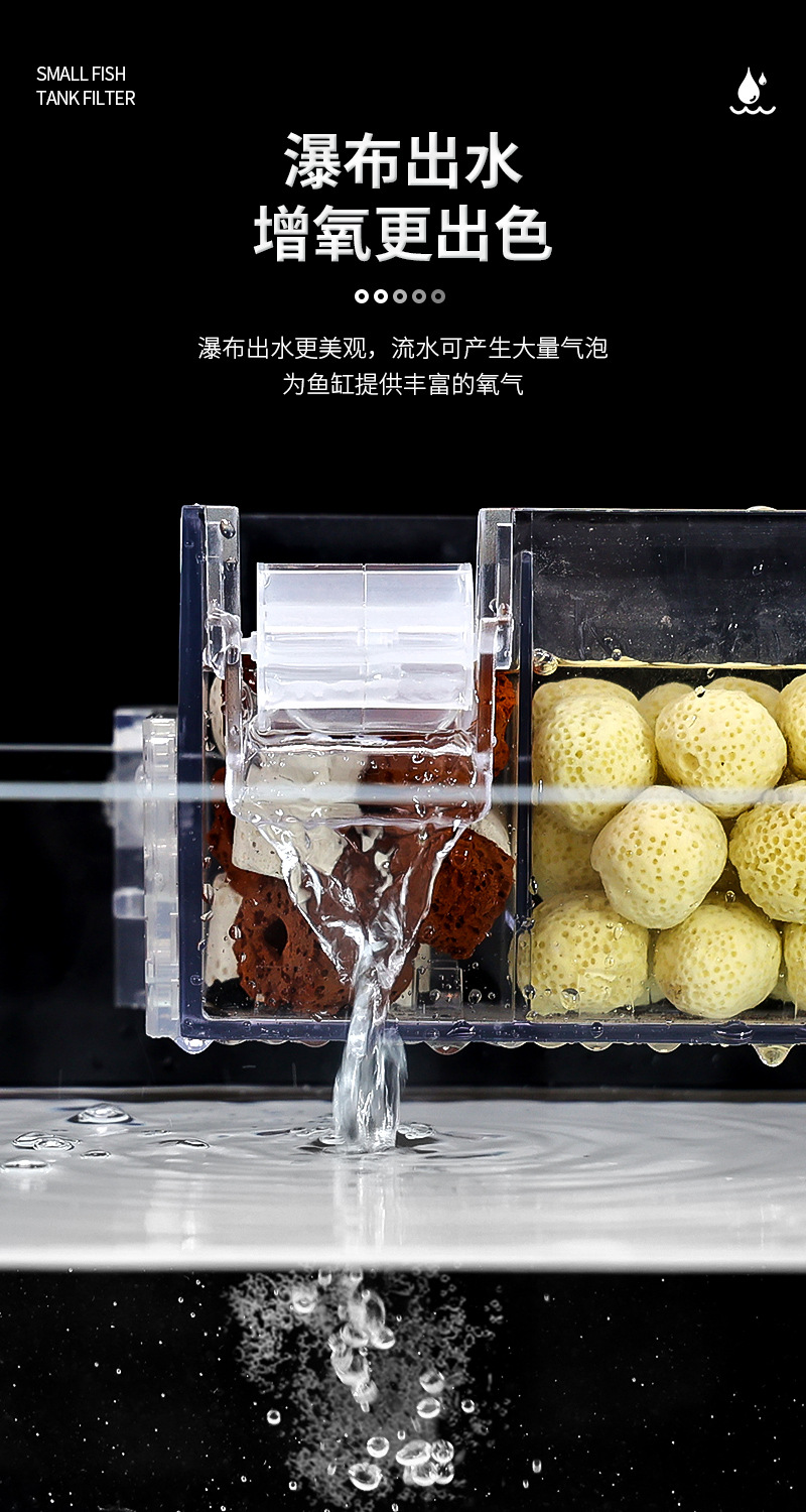 Filter Tangki Penyu Tangki Ikan Kotak Tetesan Oksigen Tiga Dalam Satu Sirkulasi Kotak Filter Air Terjun Pemurnian Air Atas Eksternal Yang Dipasang Di Dinding
