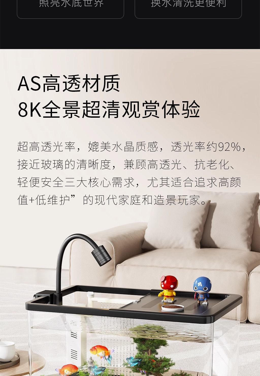 Set Lengkap Lansekap Rumah Tangga Ruang Tamu Kecil Tangki Ikan Model Baru 2025 Tangki Air Ekologis dengan Tutup Meja Transparan Tangki Ikan Emas