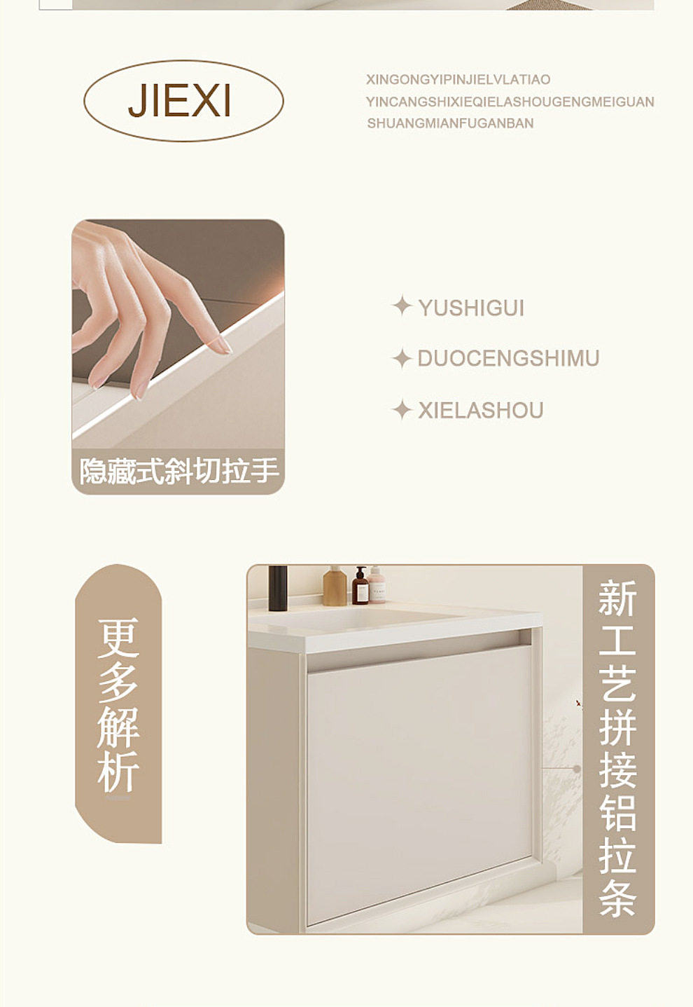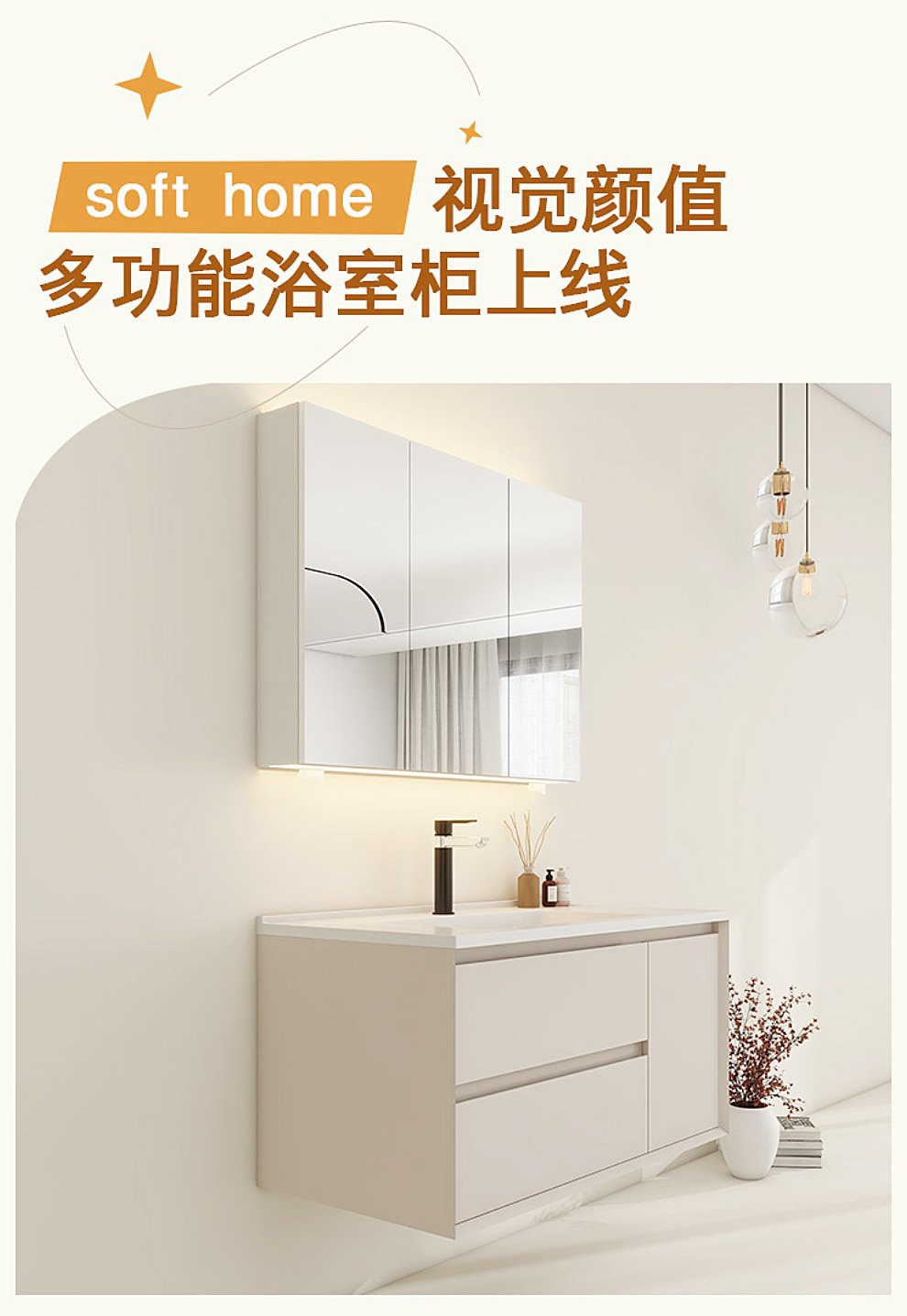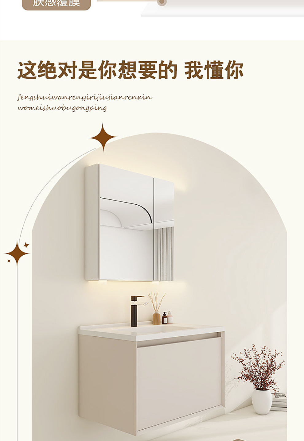 Kombinasi kabinet kamar mandi dengan wastafel keramik terintegrasi bergaya krim, kedalaman 40cm, ultra-sempit untuk apartemen kecil, warna teh susu.