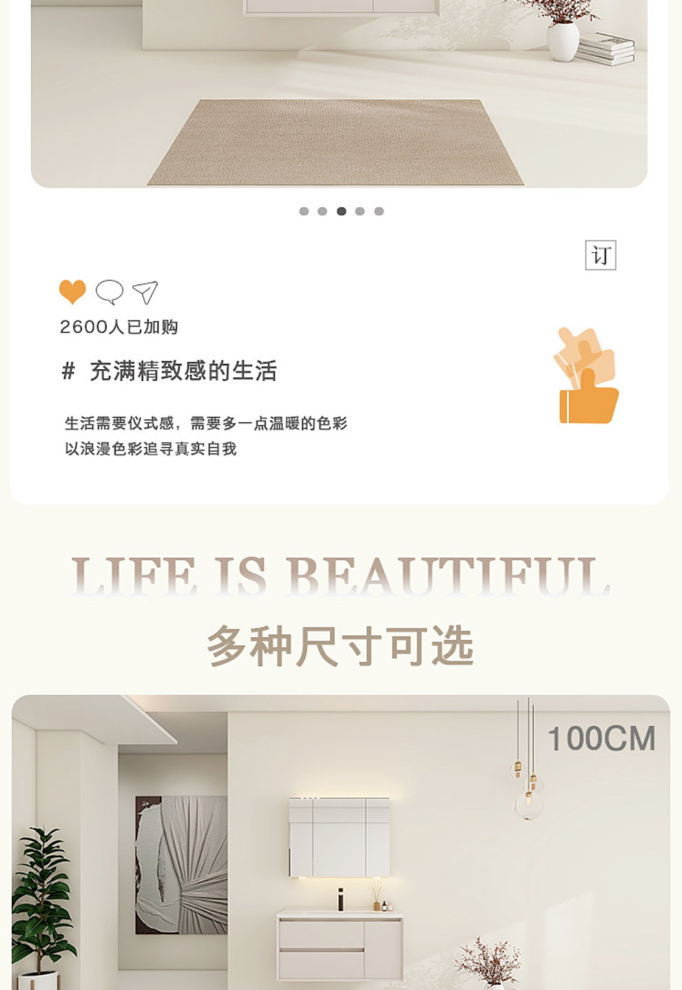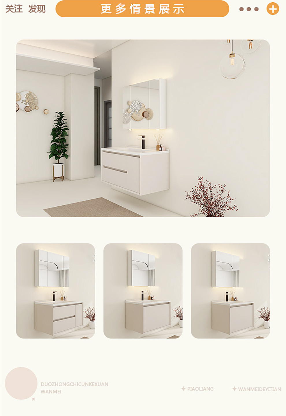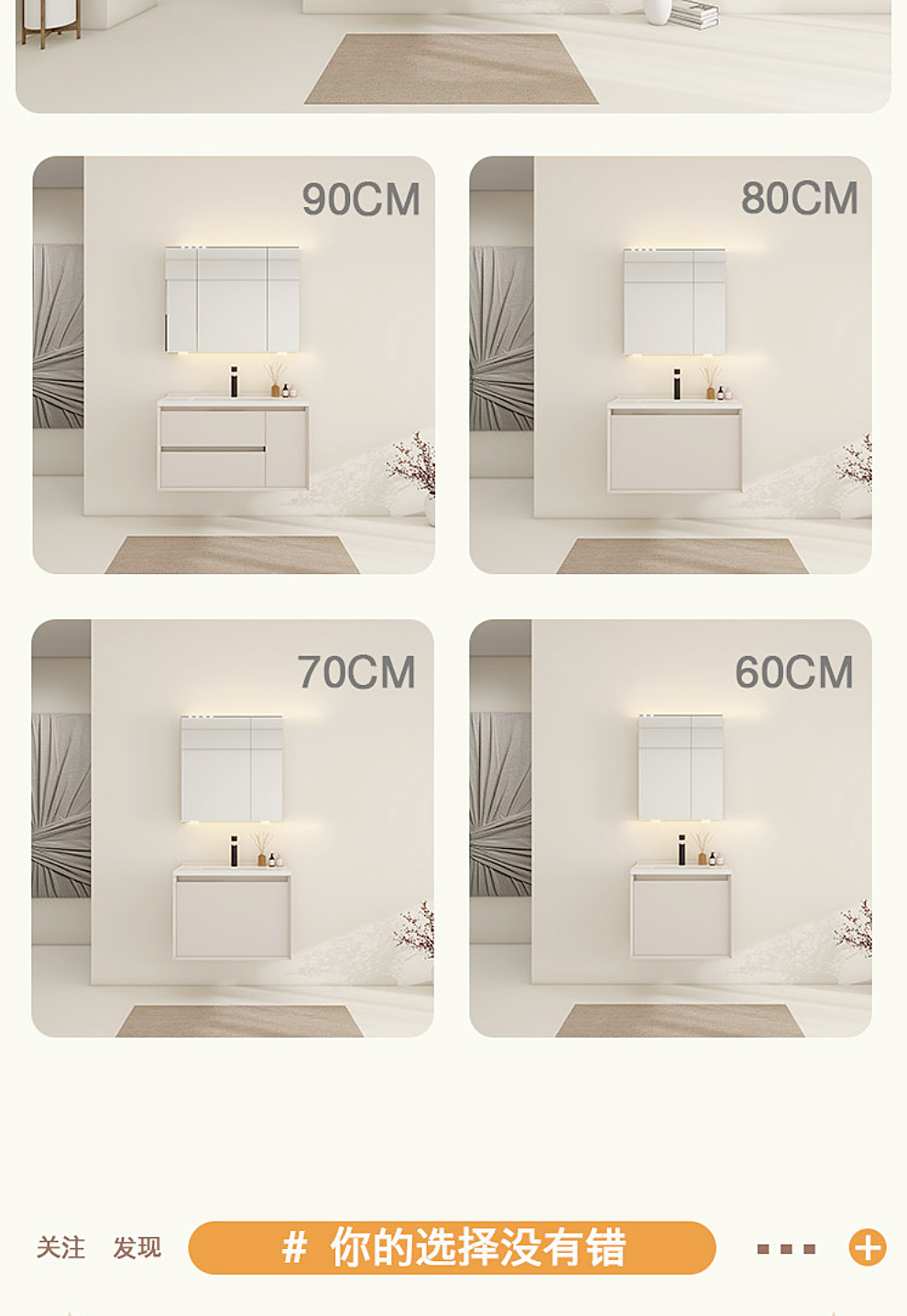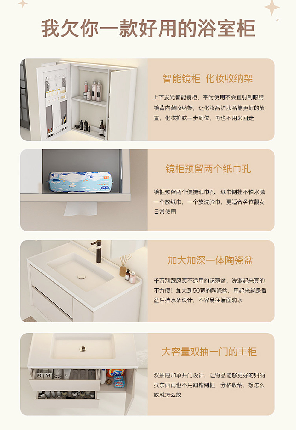 Kombinasi kabinet kamar mandi dengan wastafel keramik terintegrasi bergaya krim, kedalaman 40cm, ultra-sempit untuk apartemen kecil, warna teh susu.