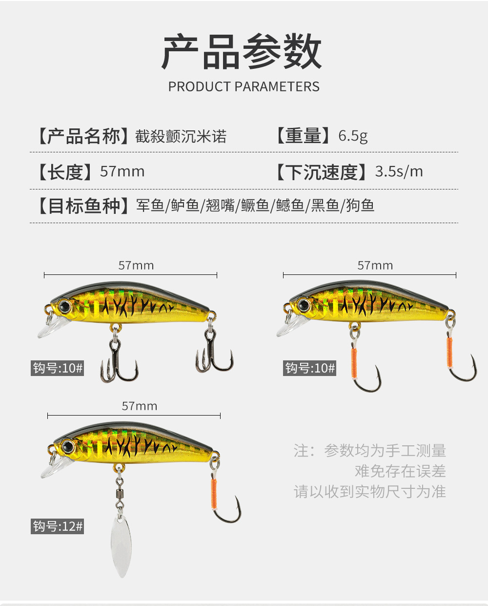 颤沉米诺沉水微物日系路亚饵6.5g全泳层远投假饵翘嘴青稍军鱼溪流