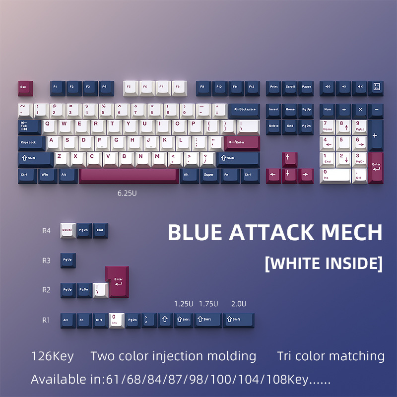 Grosir tersedia mekanisme mawar biru lintas batas (dalam putih) keycap bahan PBT set lengkap Kecil cetakan injeksi kustom 2 dua warna