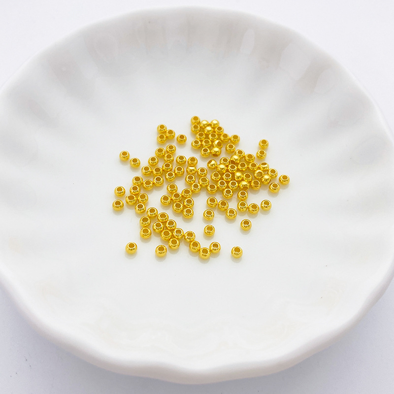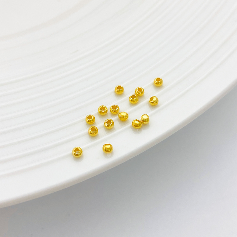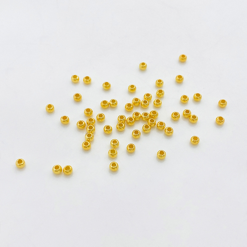 S925 Berlapis Perak Emas 24K 3Mm Manik Bulat Manik Emas Manik Spacer Kecil Buatan Tangan DIY Aksesori Gelang Manik Longgar Pengawet Warna