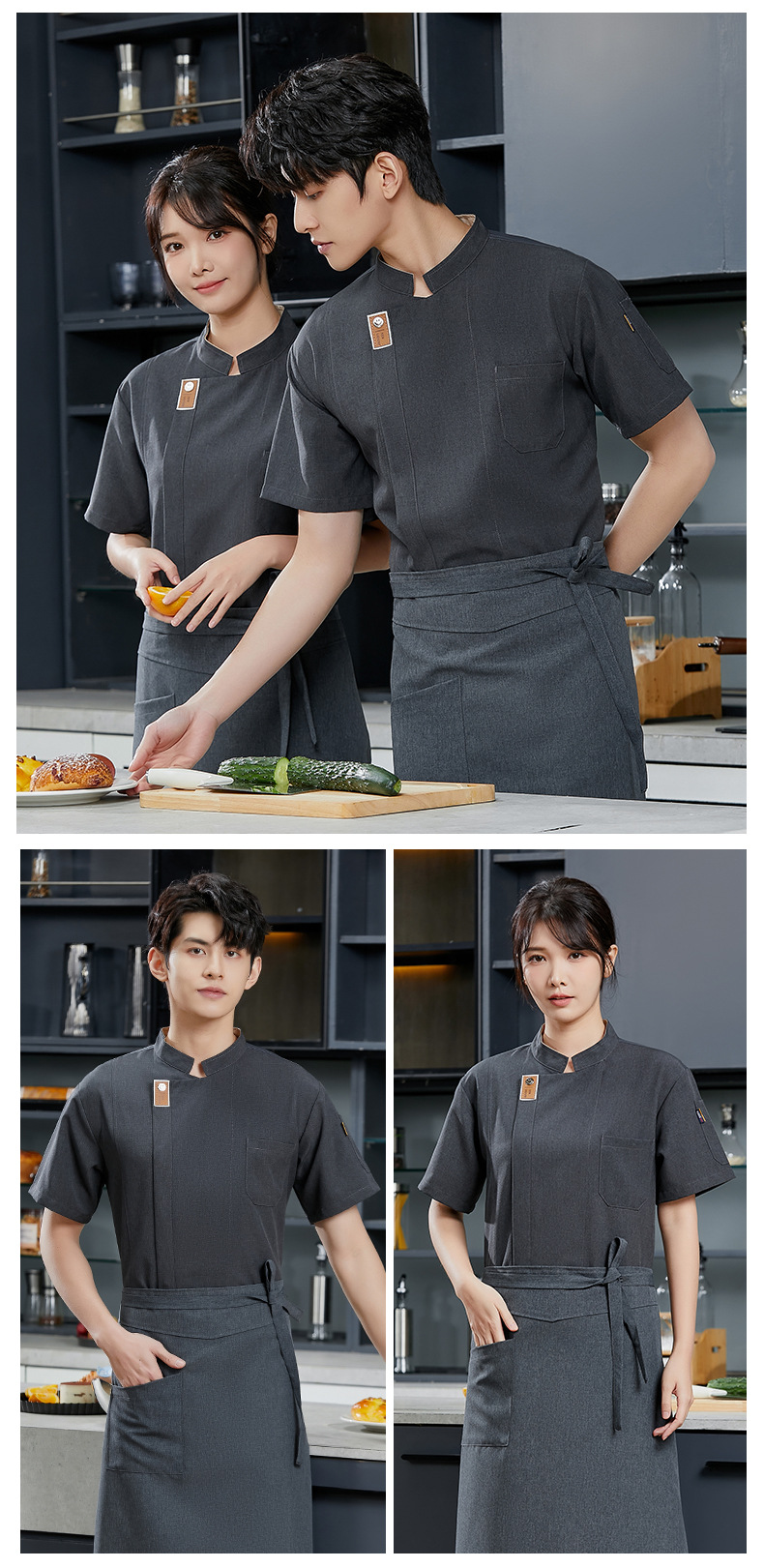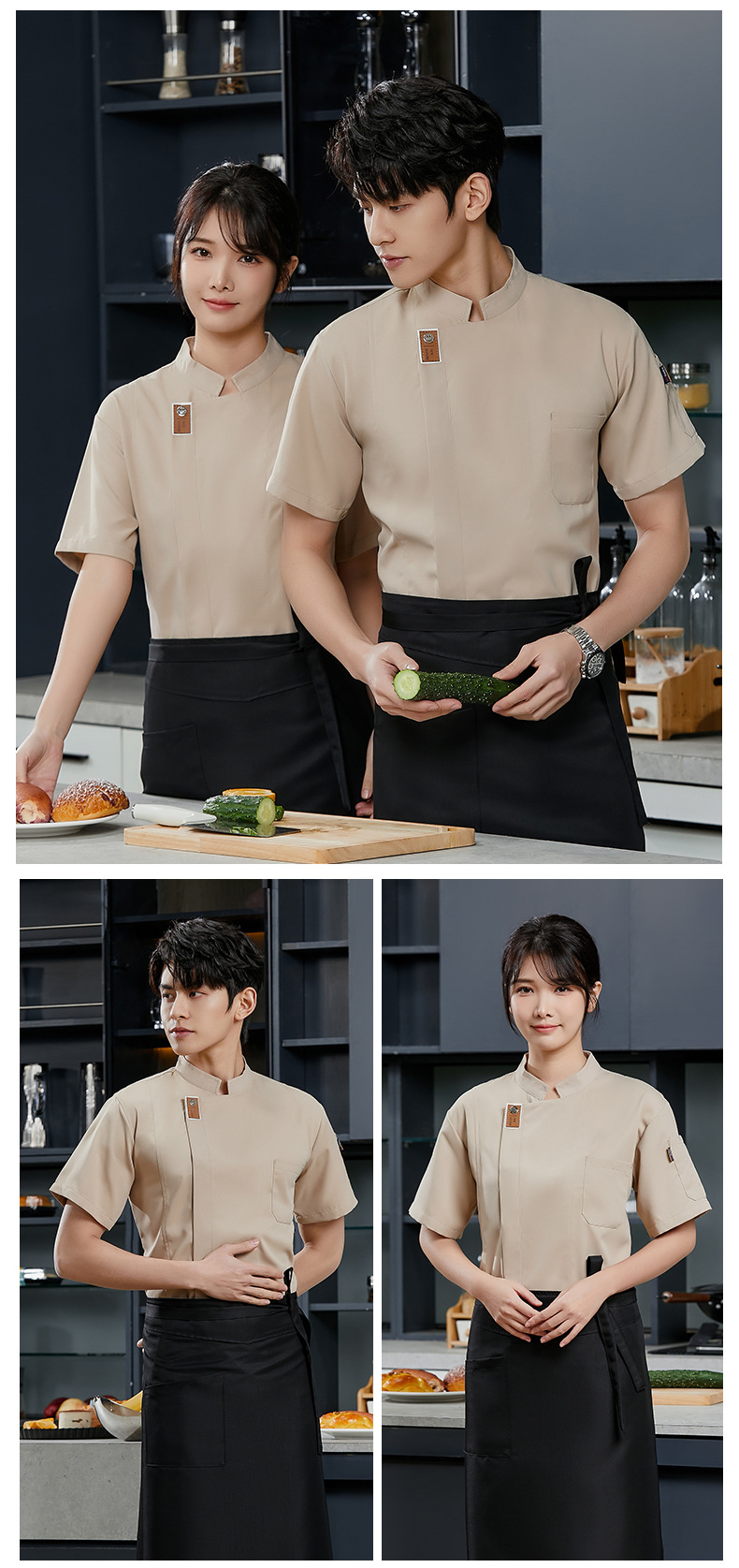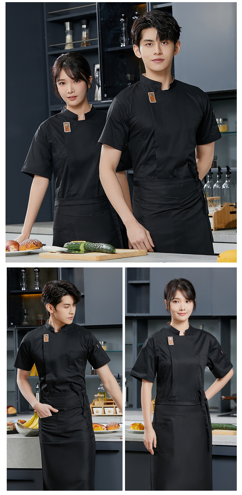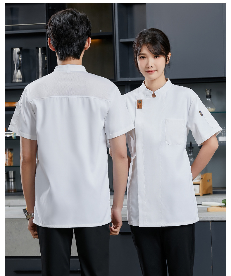 Baju kerja koki lengan pendek, pakaian kerja pelayan restoran, baju kerja koki dan restoran lengan pendek