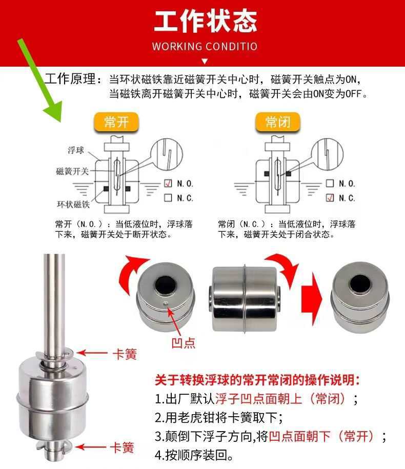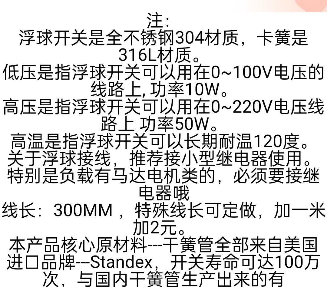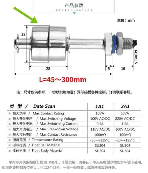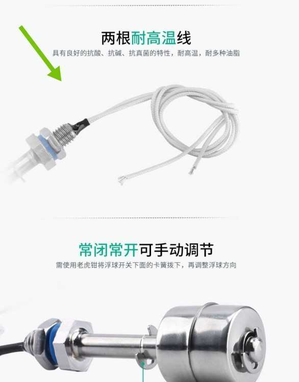 Saklar float baja tahan karat/bola tunggal, saklar level air suhu tinggi, pengontrol tingkat ES4510