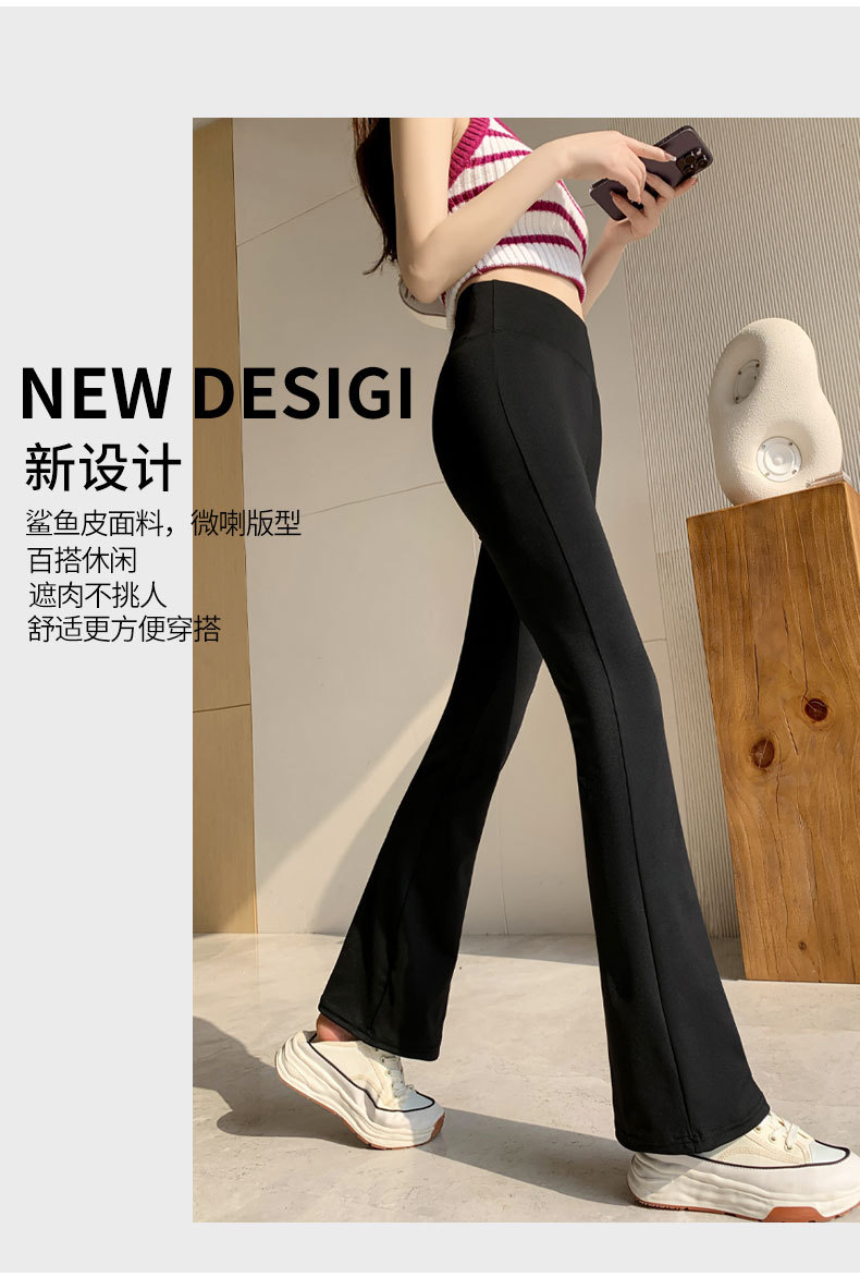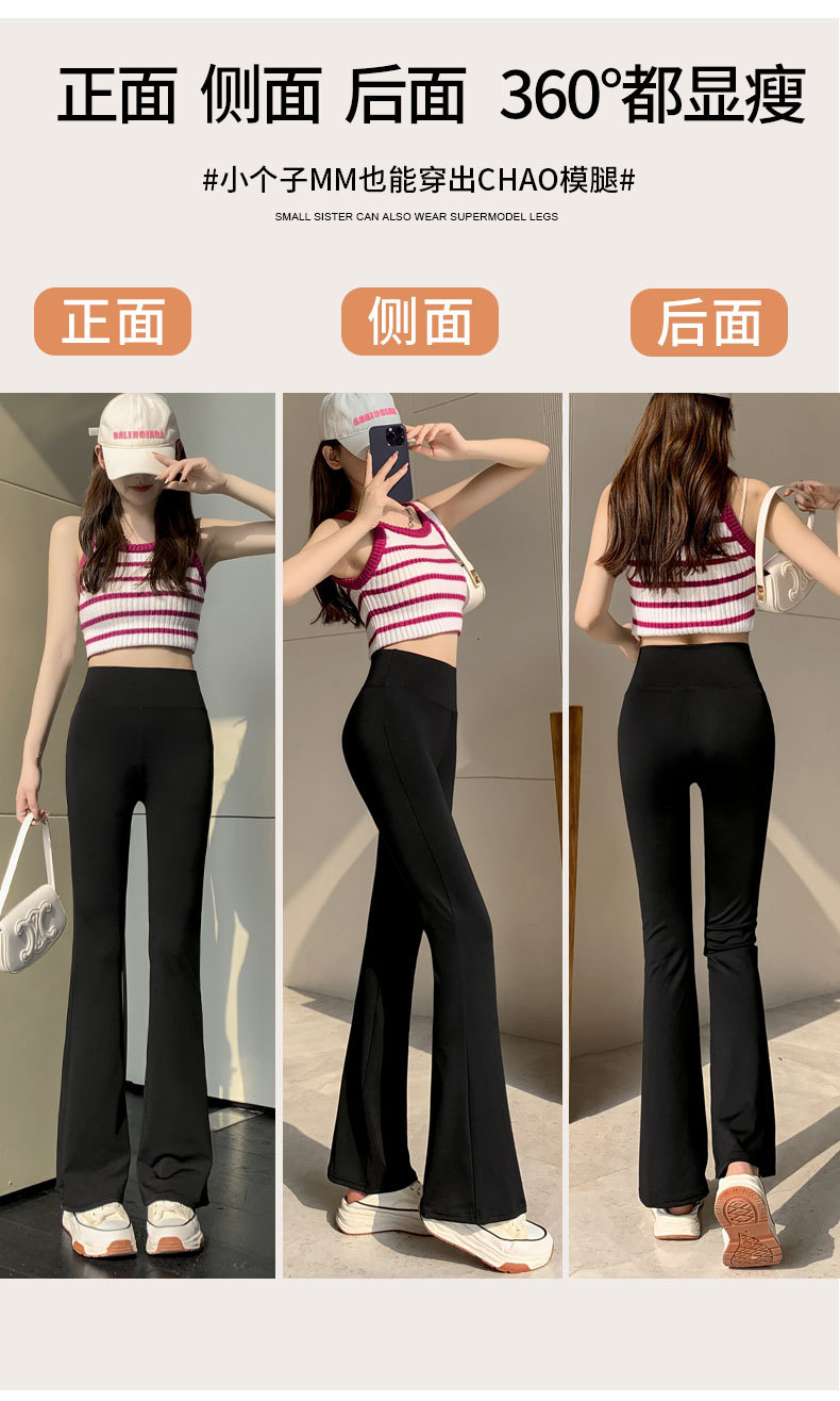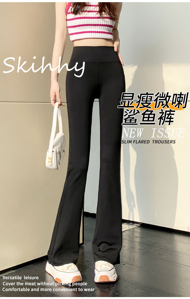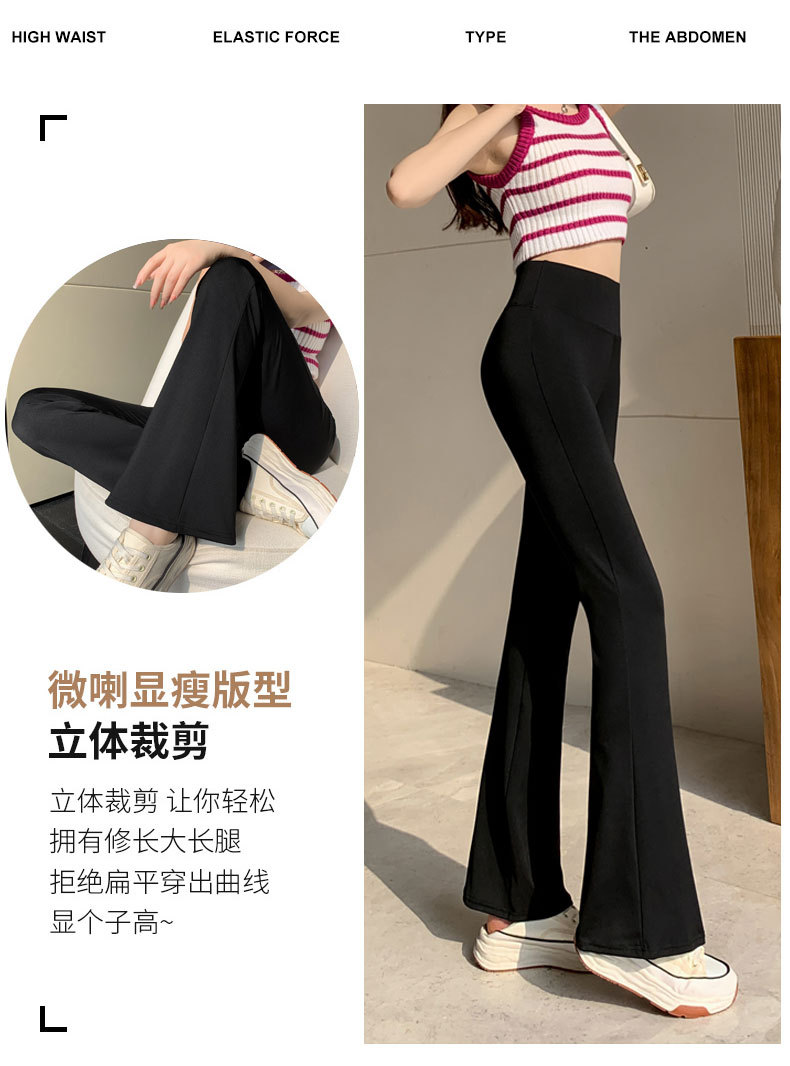 Celana panjang mikro menyala hitam untuk wanita, celana luar crop ketat pinggang tinggi elastis baru musim semi 2024