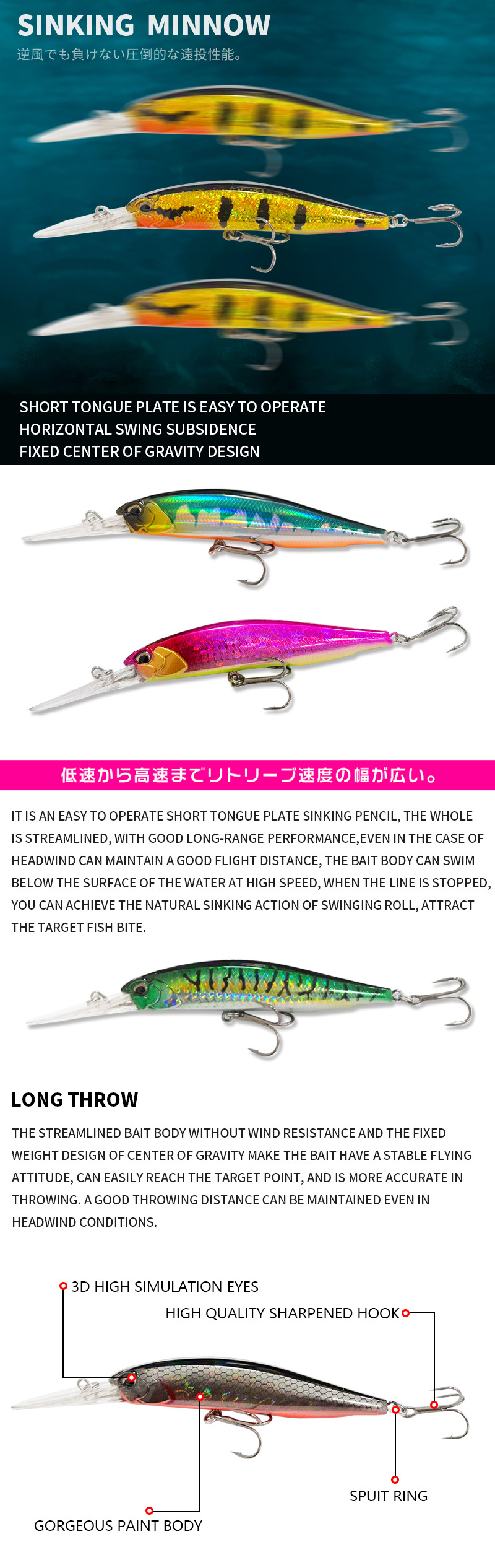 Umpan Mino 100MM/18.8g umpan lidah panjang umpan Mino Luya umpan palsu bionik umpan keras 9085 ikan Mandarin