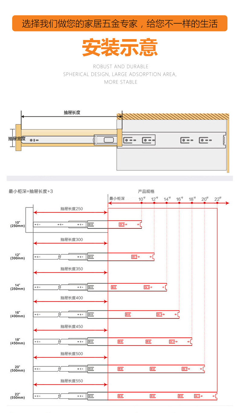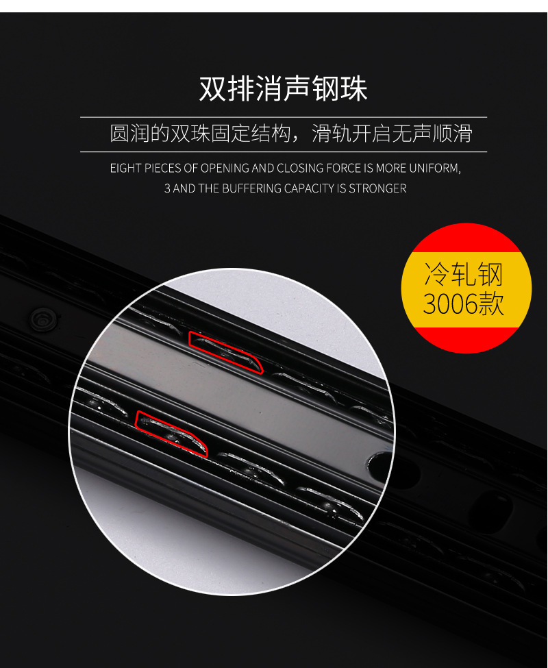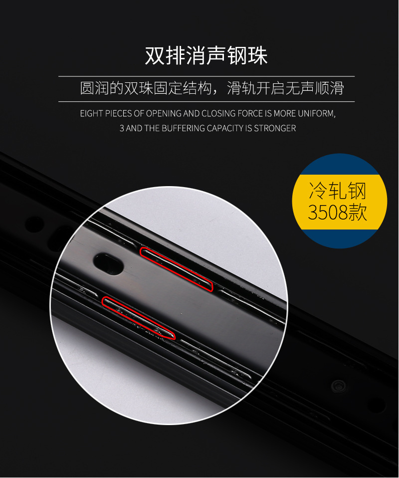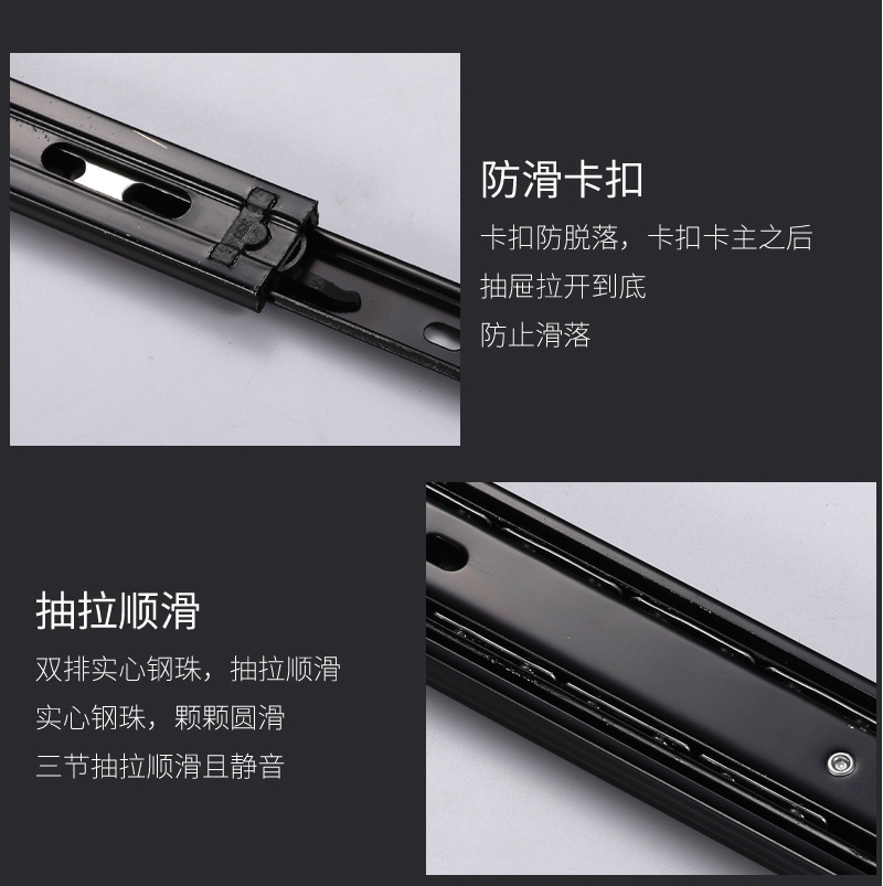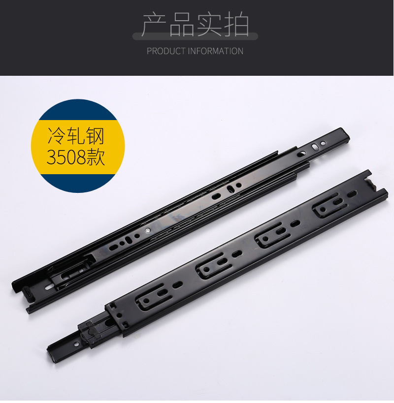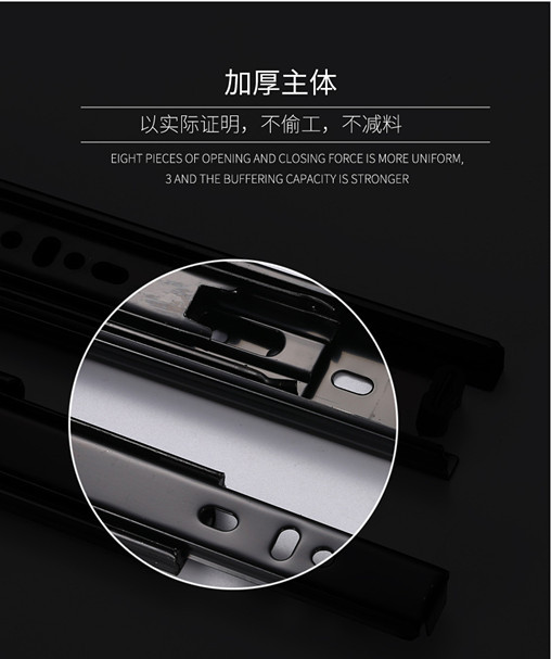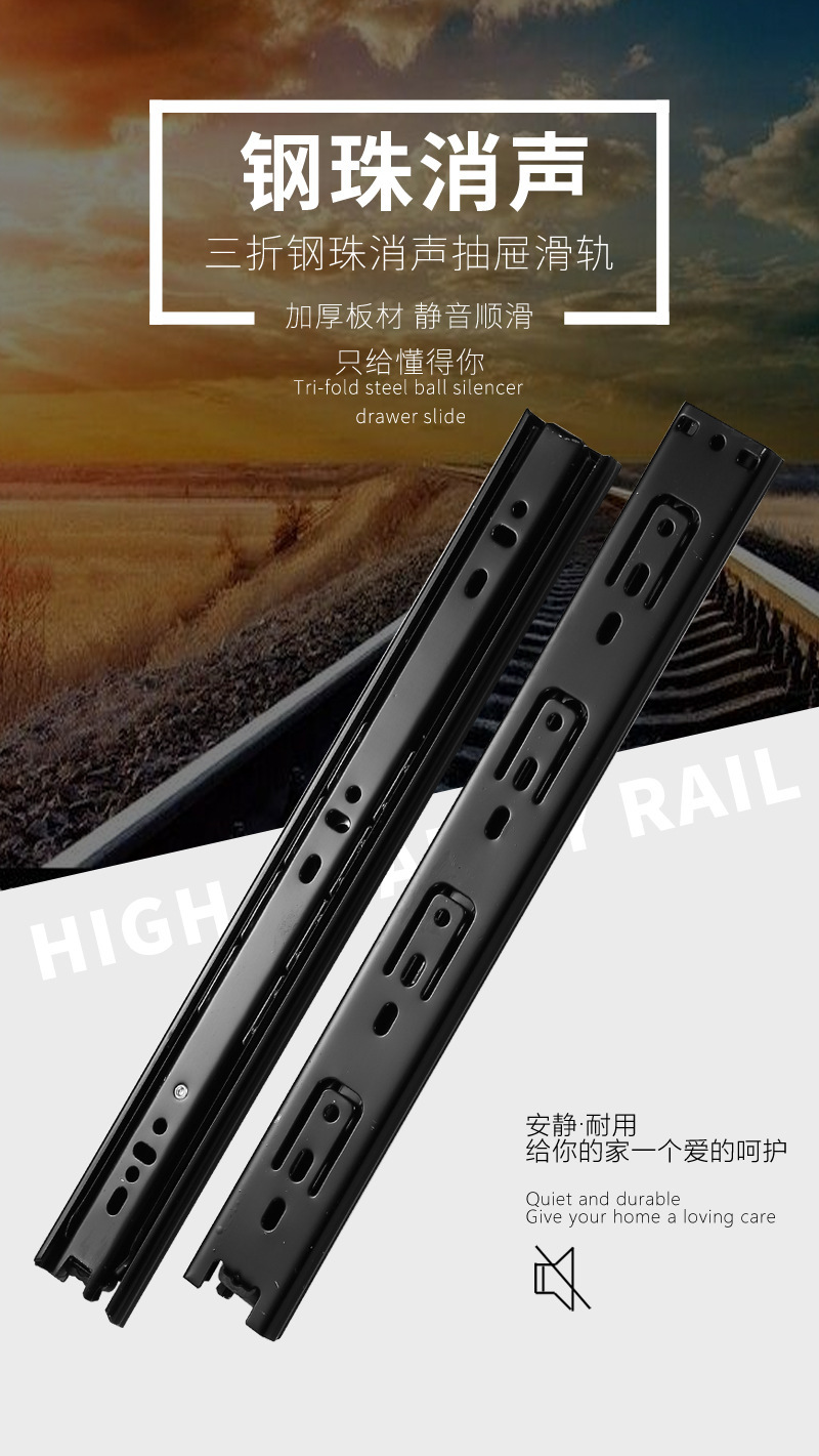 Rel pemandu laci tebal tiga bagian rel pemandu bola senyap tebal yang dipasang di samping lemari kabinet perabotan grosir perangkat keras.