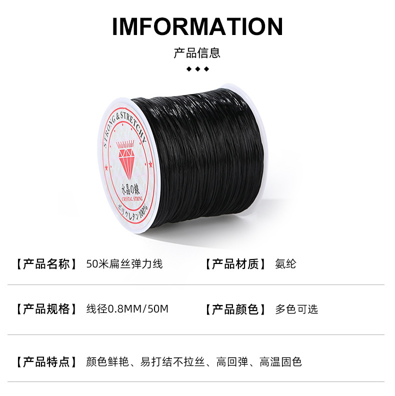Benang elastis kawat datar 0.8mm gelang benang spandex 50m