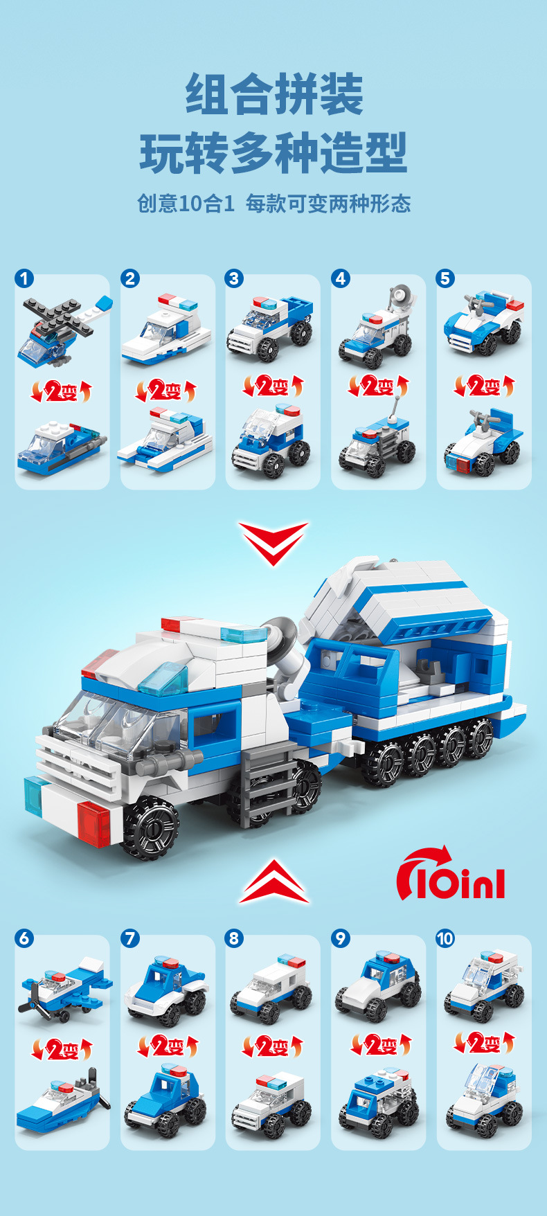 Lele Brothers Anak-anak Teka-teki Rakitan Mobil Polisi Pesawat Tank Kompatibel Lego Model Anak Laki-laki Mobil Blok Bangunan Mainan