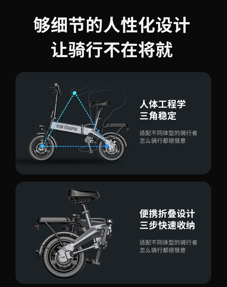 Sepeda listrik lipat 48V baru tahun 2024 untuk ekspor, dengan daya tahan baterai tinggi