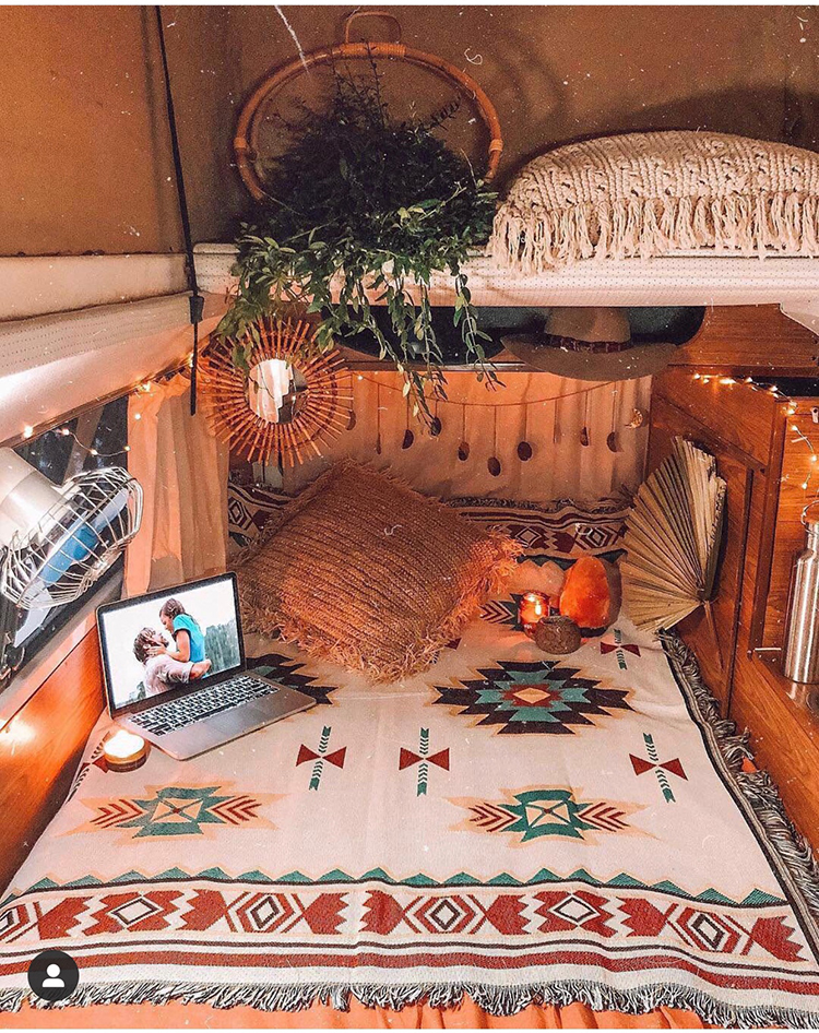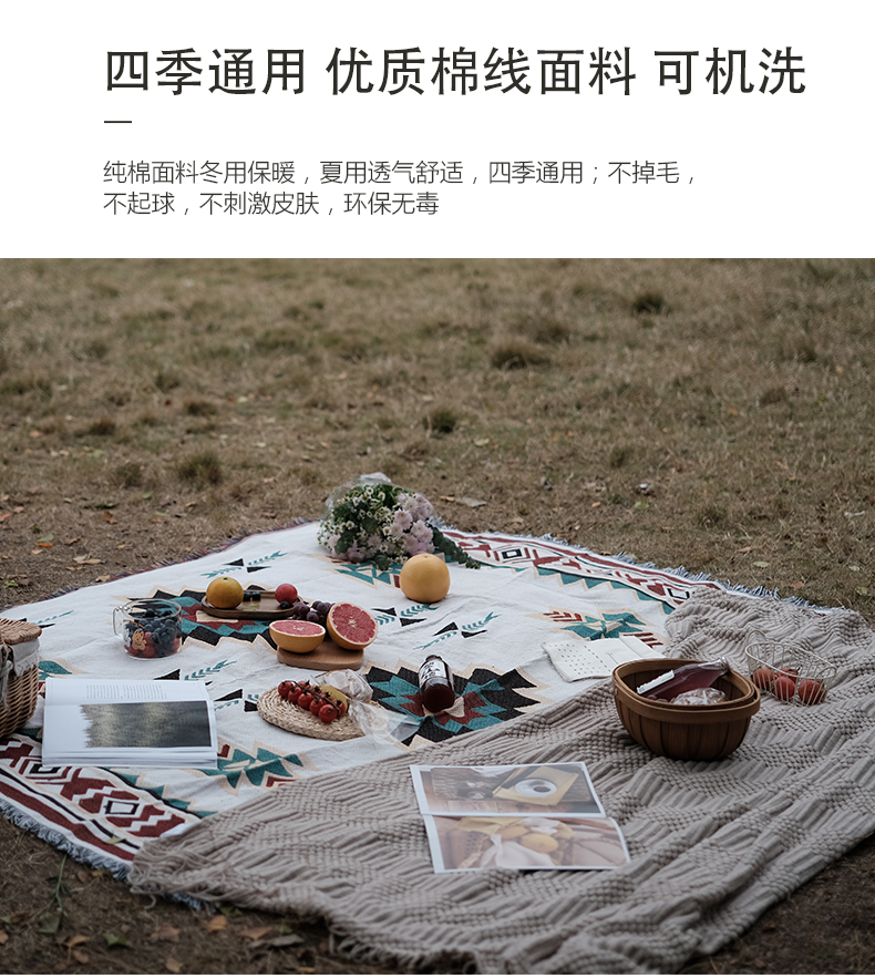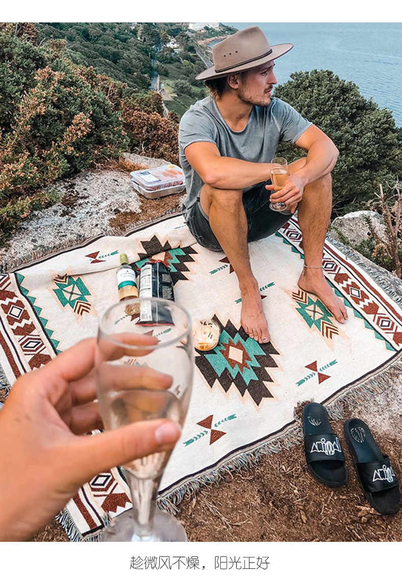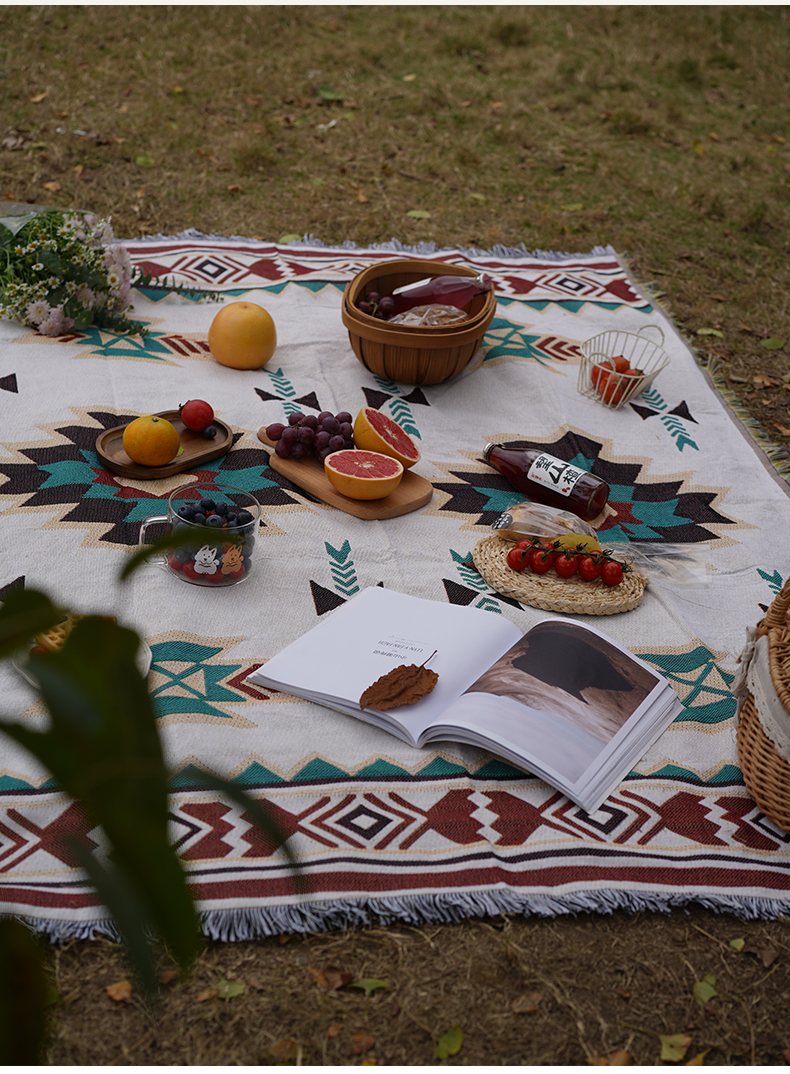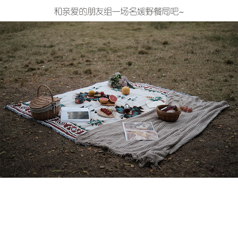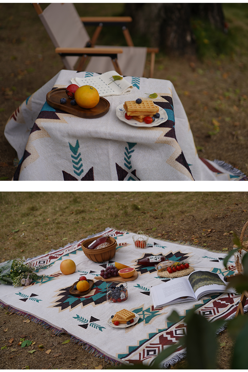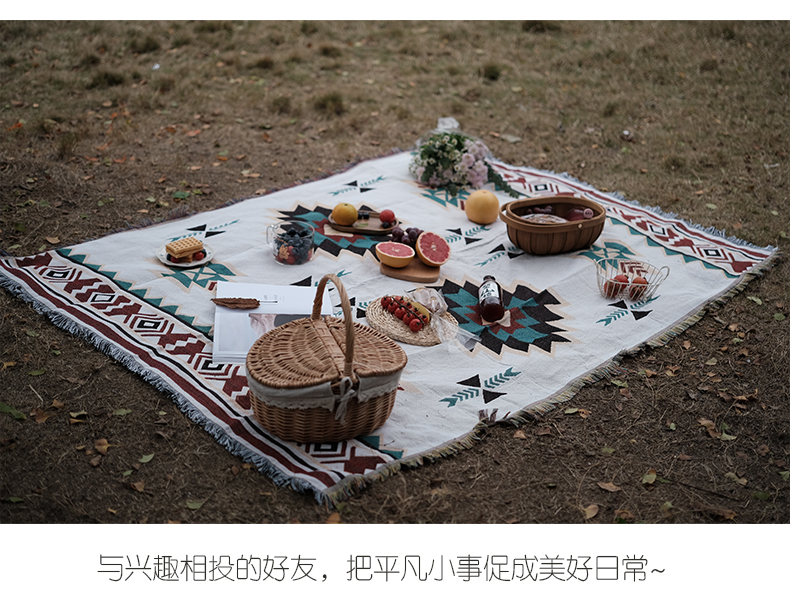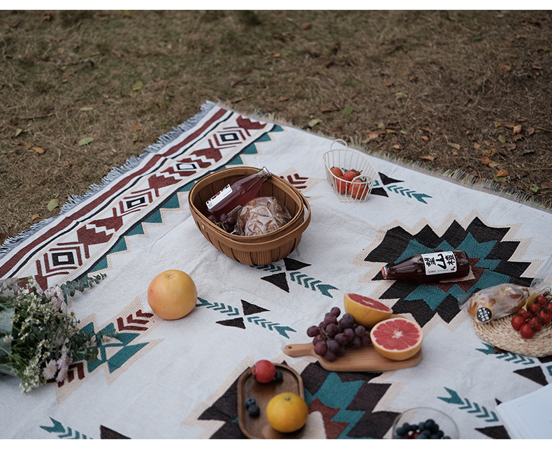 Tikar piknik tahan air, tikar tebal angin ins tikar luar ruangan, selimut karpet bohemian kain piknik Kemah