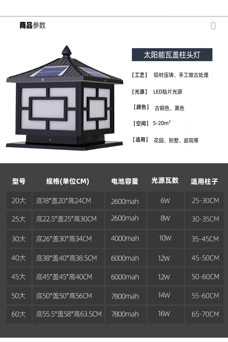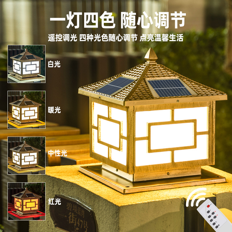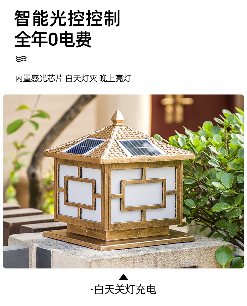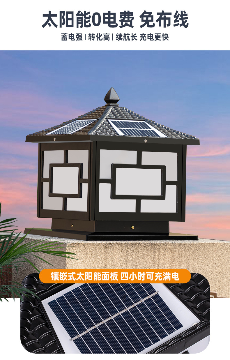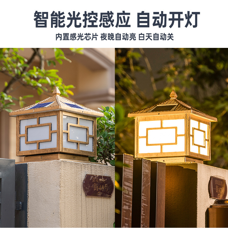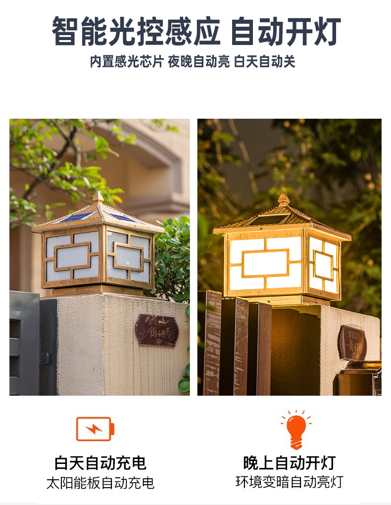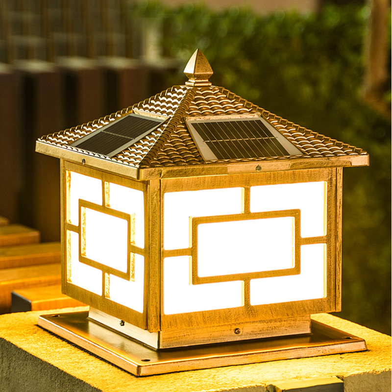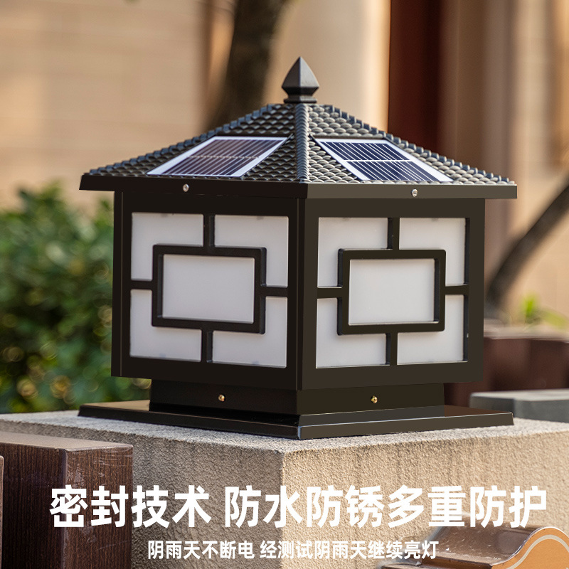 Lampu pilar surya tahan air untuk luar ruangan, lampu taman, halaman, pagar, rumah, vila, balkon, gerbang, dan tiang.
