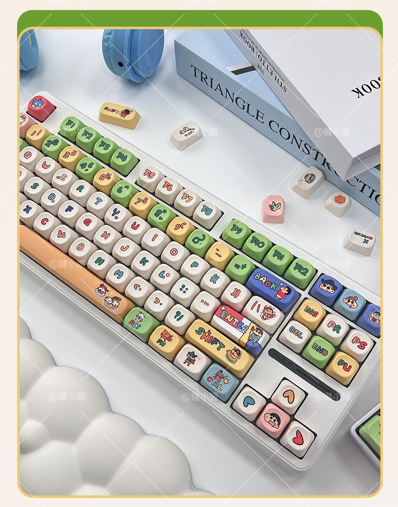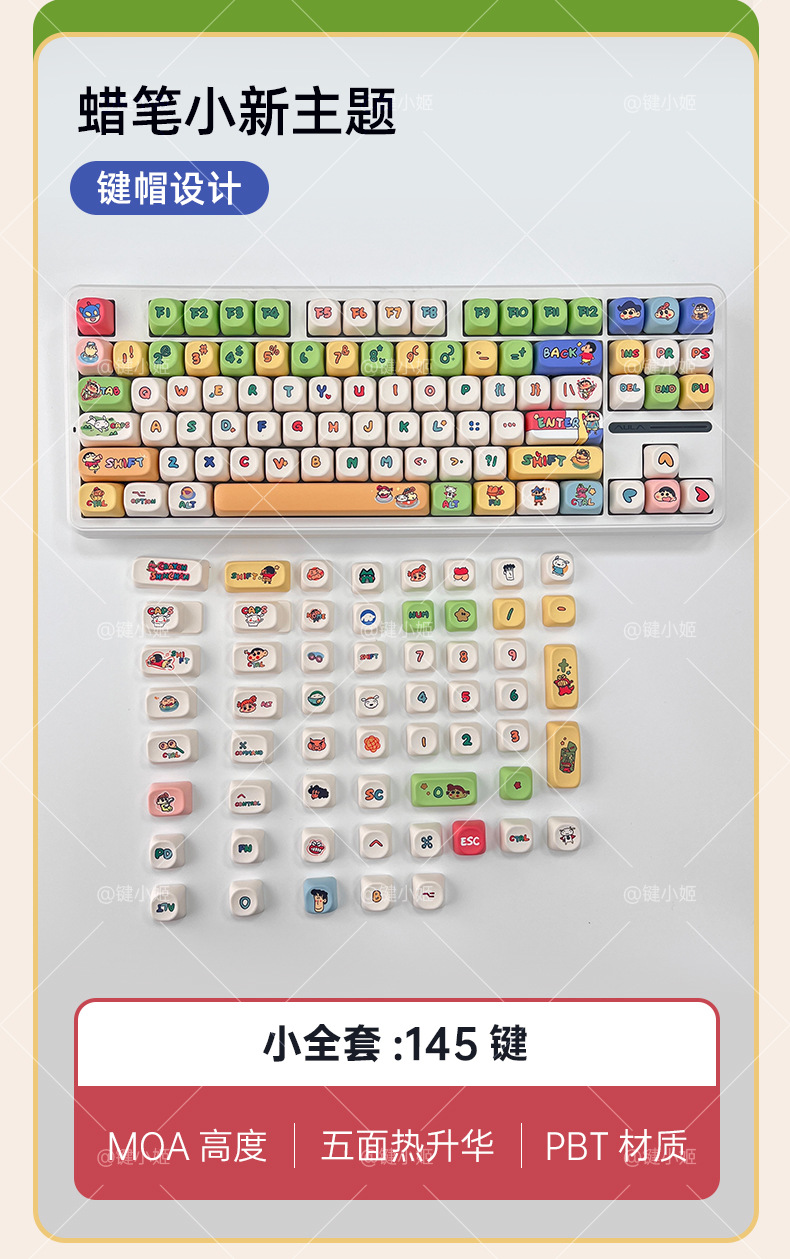 蜡笔小新2.0(袋装)130键五面热升华键帽PBT高度可爱圆润仅键盘帽