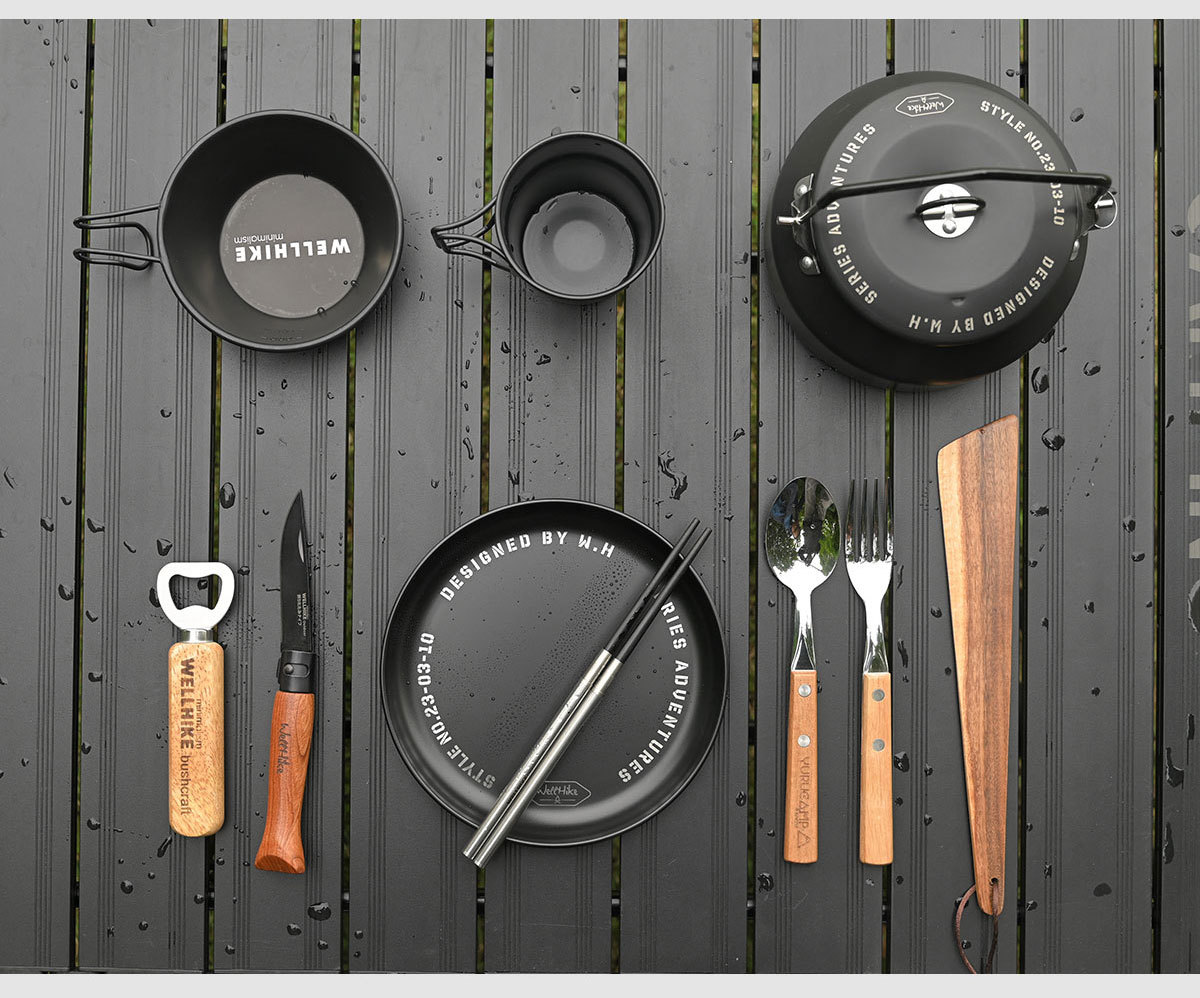 WELLHIKE Piring Makan Taktis Luar Ruangan Piring Portabel Stainless Steel Gaya Jepang Peralatan Makan Berkemah Peralatan Masak Liar