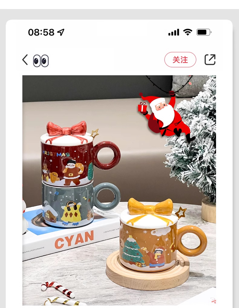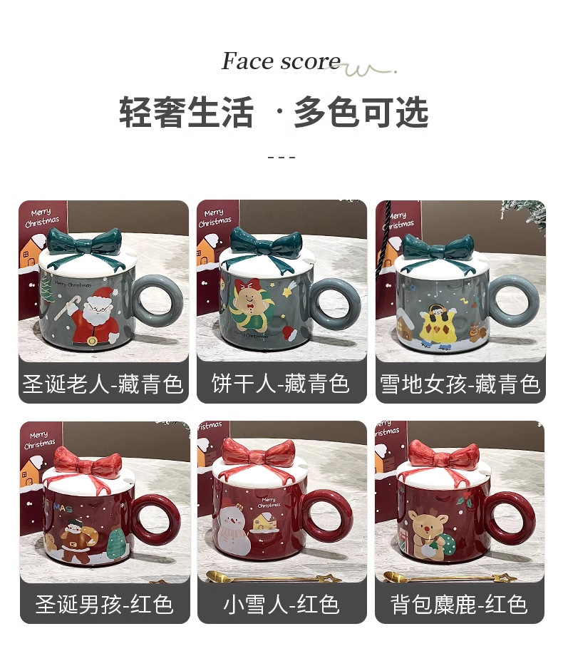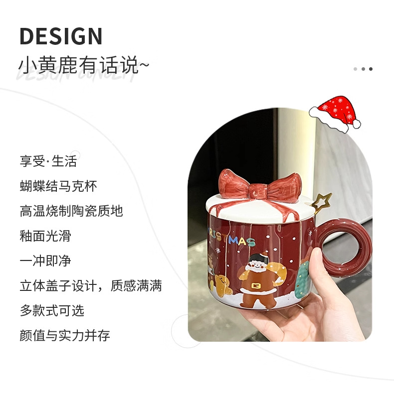Cangkir Natal Cangkir Keramik dengan Penutup Cangkir Hadiah Natal Set Hadiah Cangkir Air Perdagangan Luar Negeri Keramik Grosir