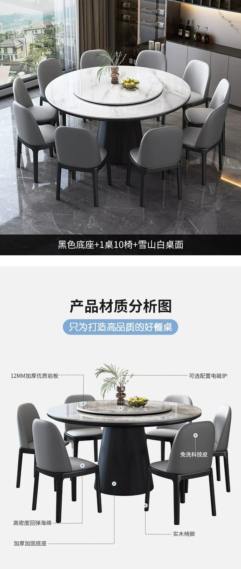 Meja Makan Kayu Solid Bentuk Bulat Ekstra Tebal Sederhana Modern Kombinasi Meja Makan dan Kursi Rumahan Hotel Mewah Ringan Meja Berputar Meja Meja Batu Meja Bundar