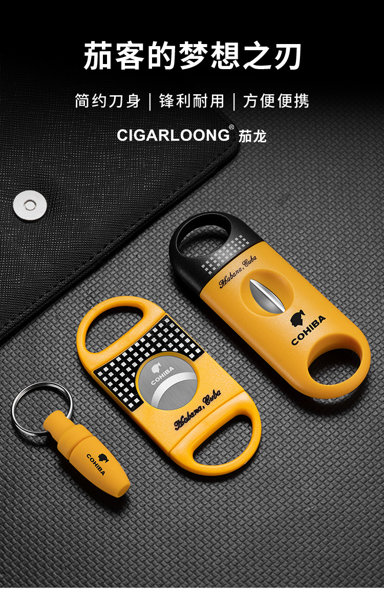 Gunting cerutu pisau cerutu baja tahan karat pisau cerutu portabel pisau tajam penggunaan ganda gunting V + gunting datar