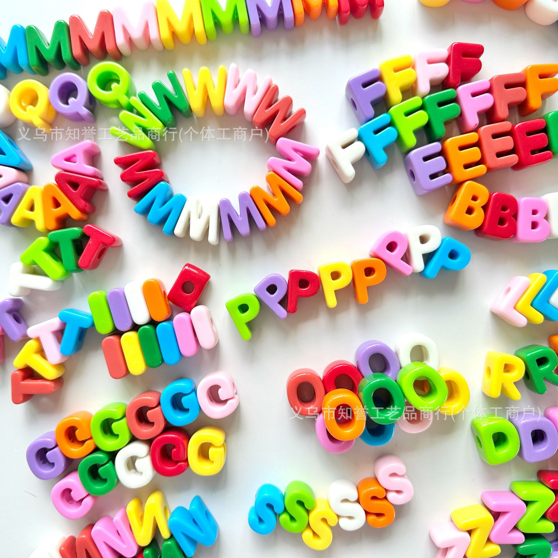 Hot Sale Alfabet Akrilik Manik-manik Dopamin Manik-manik Lubang Besar Bahan Dukungan DIY Gesper Sepatu Manik-manik Huruf
