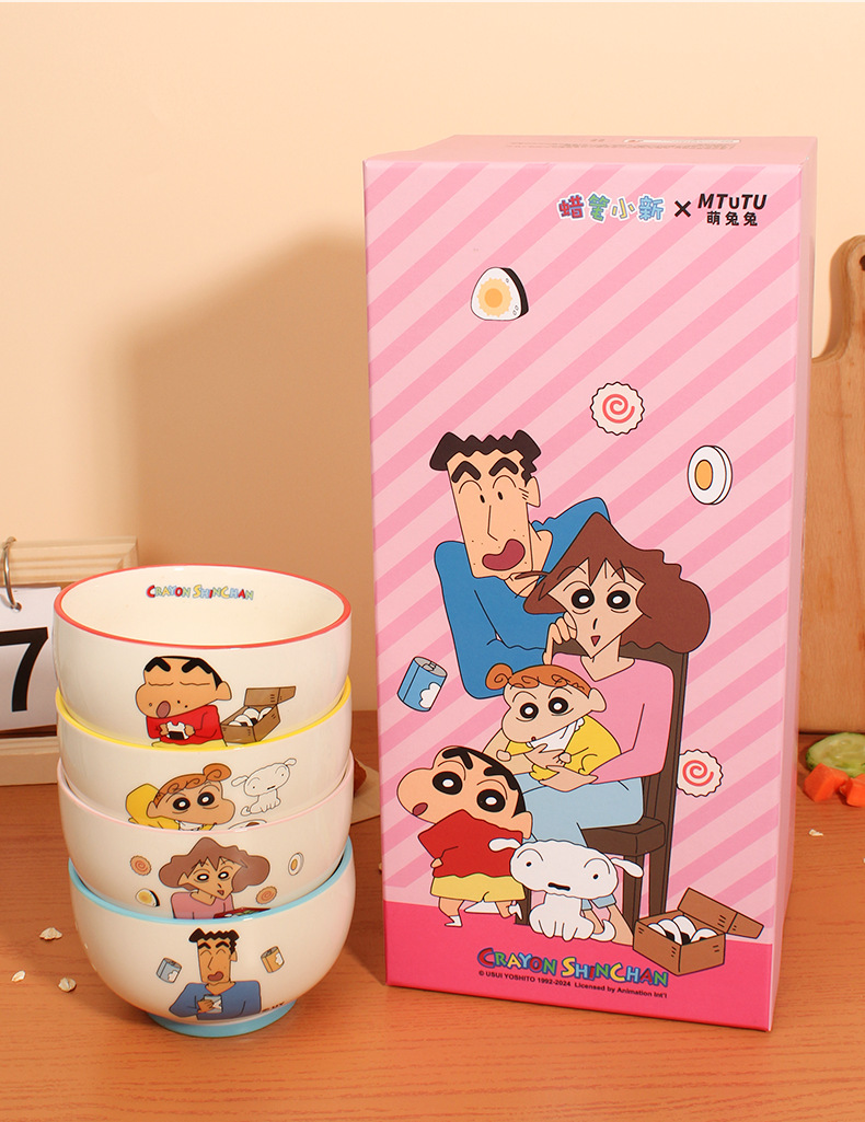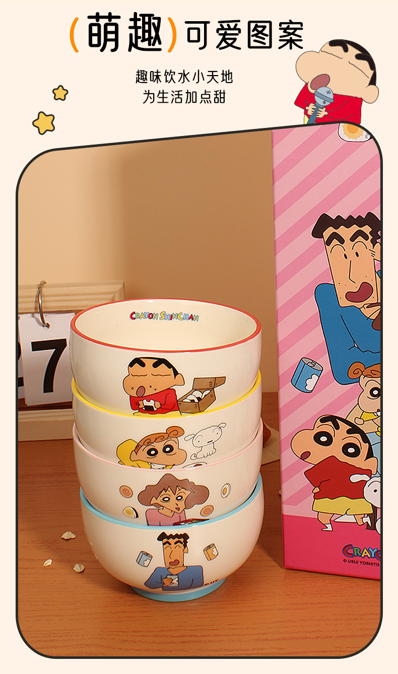 Peralatan Makan Crayon Shinchan Nilai Tinggi Mangkuk Anak Lucu Mangkuk Sup Mangkuk Mie Mie Mie Kartun Set Mangkuk Anak-Anak Rumah Tangga