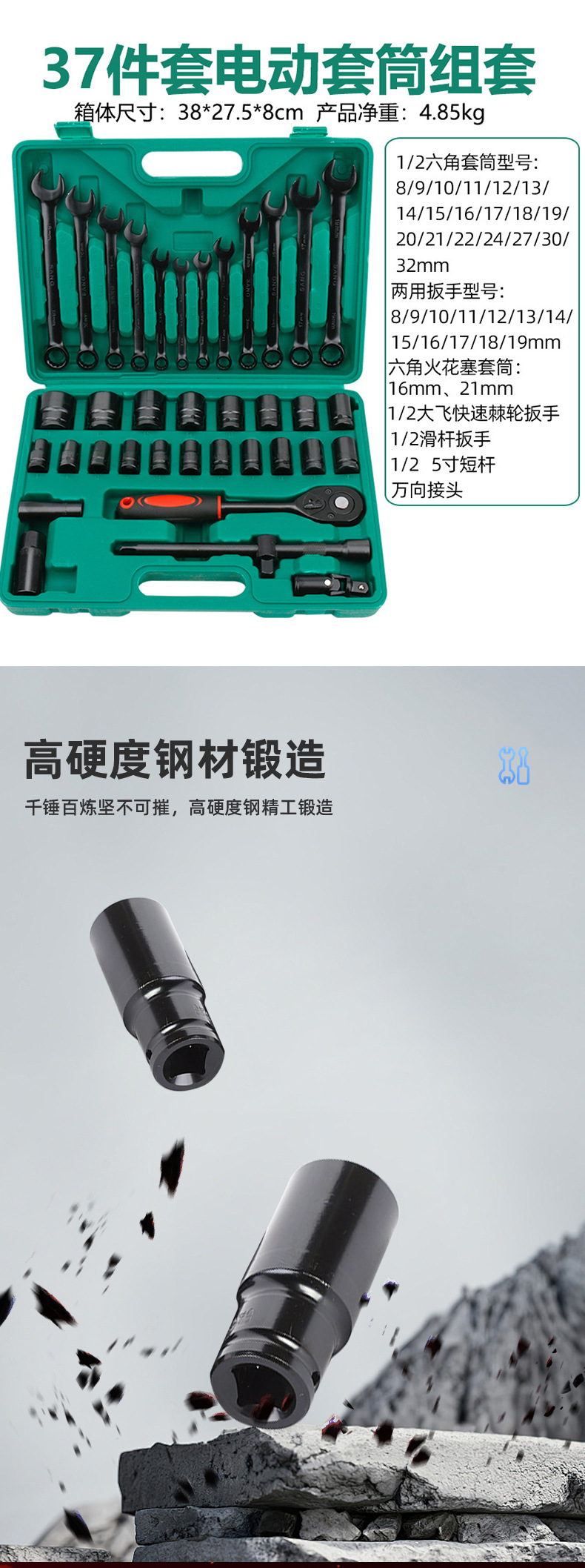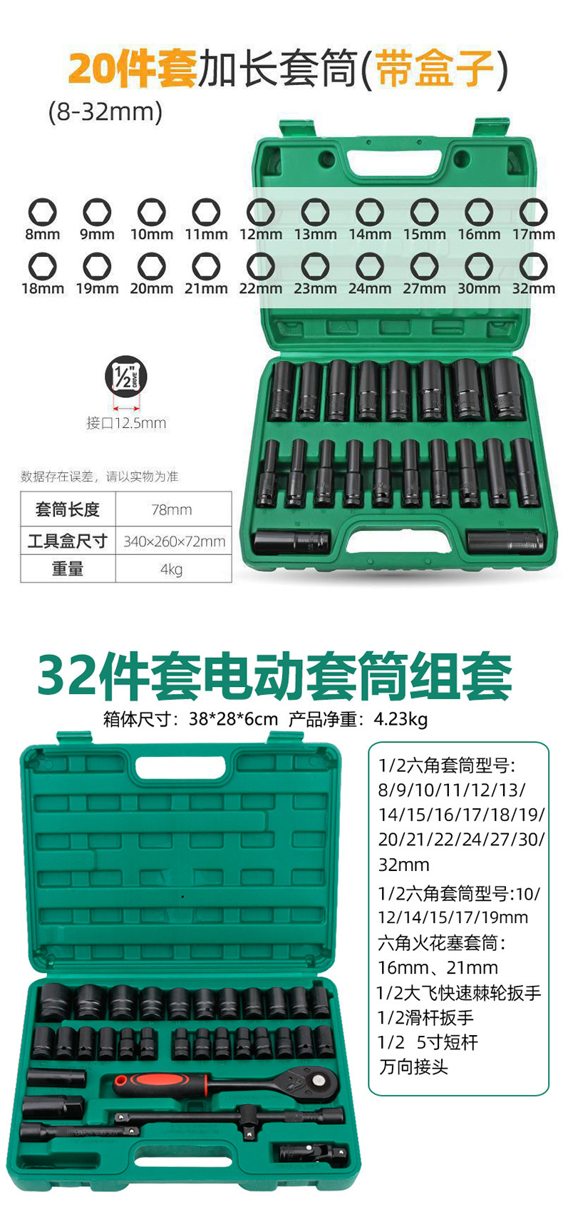 加长电动扳手套筒套装内六角8-32mm机修汽修组合工具套头汽修专用